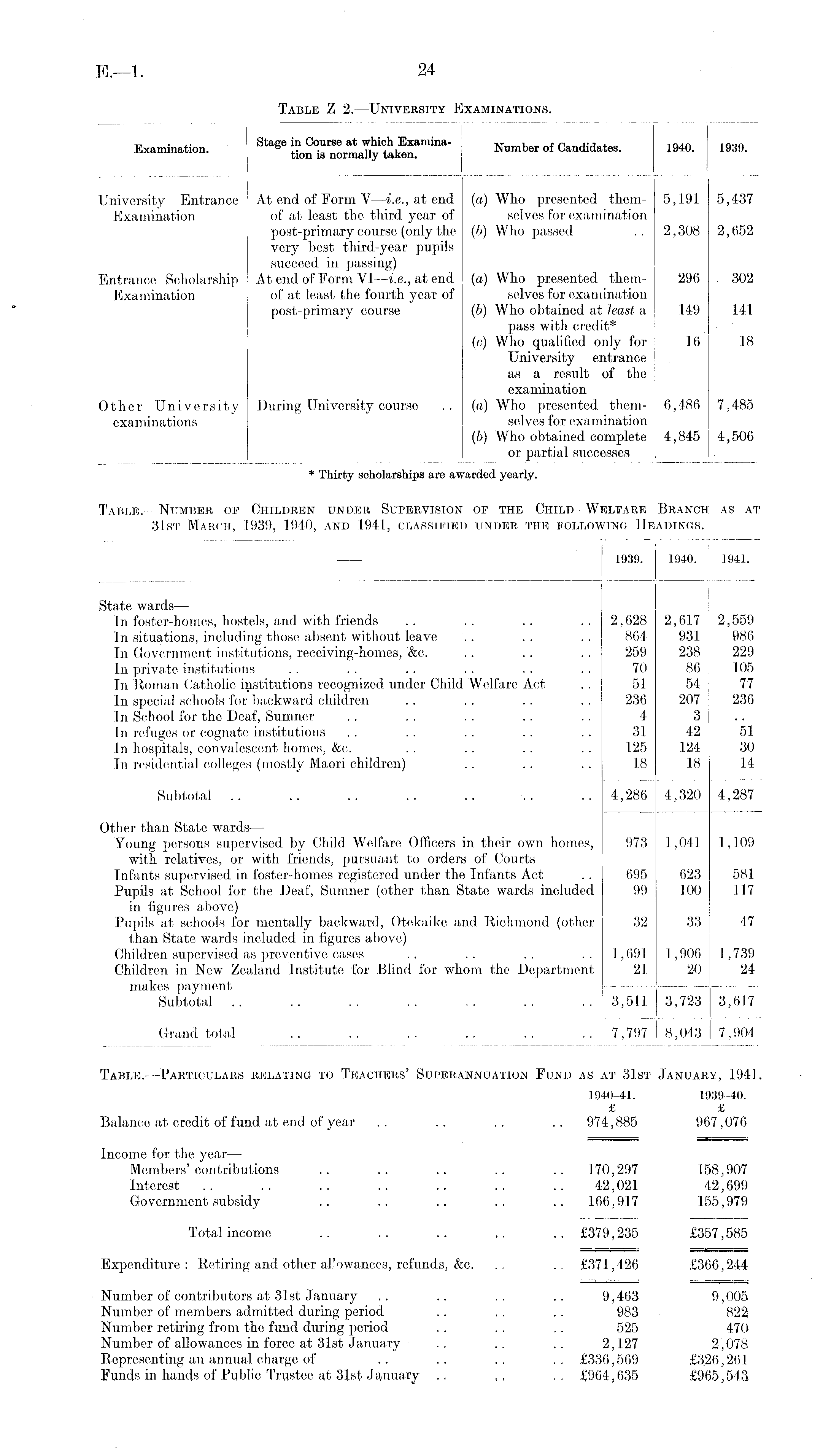 Table. —Particulars relating to Teachers' Superannuation Fund as at 31st January, 1941. 1940-41. 1939-40. £ £ Balance at credit of fund at end of year .. .. .. .. 974,885 967,076 Income for the year — Members'contributions .. .. .. .. .. 170,297 158,907 Interest .. .. .. .. .. .. .. 42,021 4-2,699 Government subsidy .. .. .. .. .. 166,917 155,979 Total income .. .. .. .. .. £379,235 £357,585 Expenditure: Retiring and other allowances, refunds, &c. .. .. £371,426 £366,244 Number of contributors at 31st January .. .. .. .. 9,463 9,005 Number of members admitted during period .. .. .. 983 822 Number retiring from the fund during period . . . . , . 525 470 Number of allowances in force at 31st January .. .. .. 2,127 2,078 Representing an annual charge of .. .. .. .. £336,569 £326,261 Funds in hands of Public Trustee at 31st January ~ ~ £964,635 £965,543