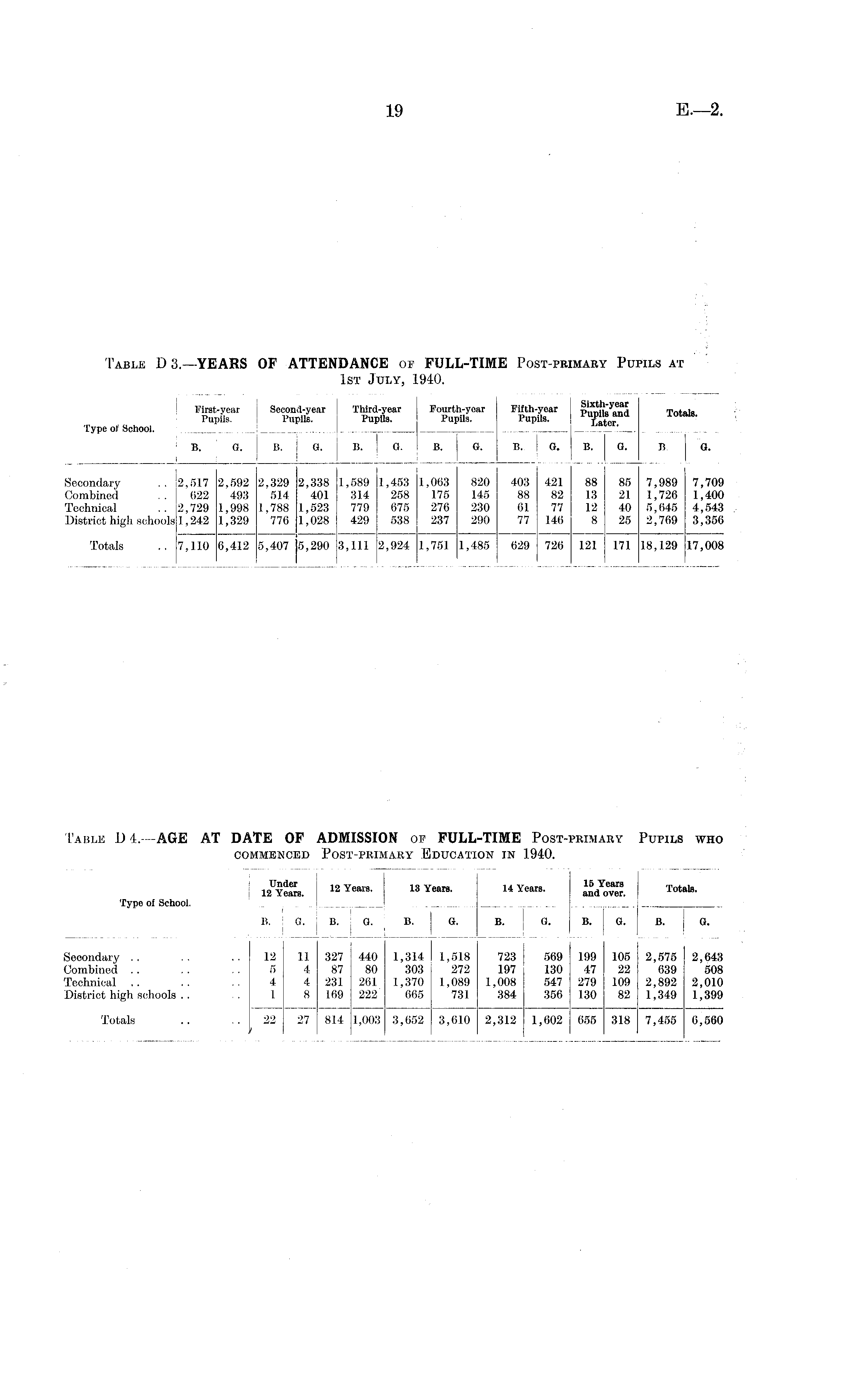 Table D3.—YEARS OF ATTENDANCE of FULL-TIME Post-primary Pupils at 1st July, 1940.