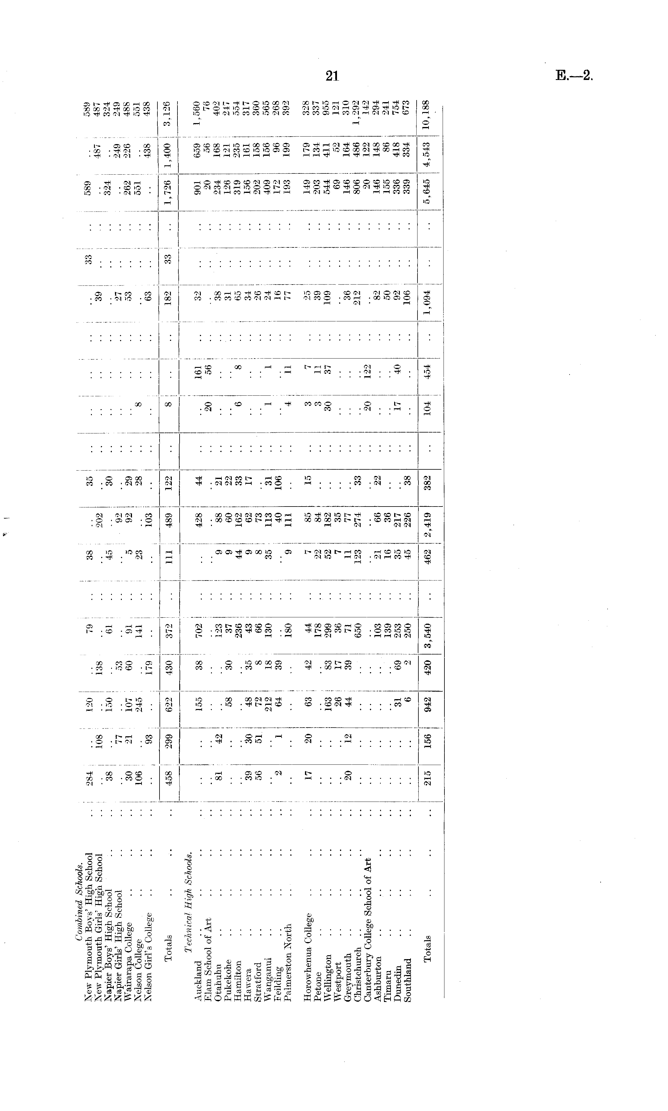 Combined Schools. \ ill New Plymouth Boys' High School .. 284 .. 120 .. 79 .. 38 .. 35 .. .... .. .. 33 .. 589 .. 589 New Plymouth Girls' High School .. .. 108 .. 138 .. .. .. 202 .. .. .. •. .. 39 .. . 487 487 Napier Boys' High School .. .. 38 .. 150 61 .. 45 . 30 .. . . .. . • .. .. • • 324 .. 324 Napier Girls' High School .. .. .. 77 .. 53 .. • • ! 92 .. .. .. • • • • 27 | .. •. ■ • 249 249 Wairarapa College .. .. .. 30 21 107 60 91 j 5 92 29 .. .. .. .. 53 .. 262 226 488 Nelson College .. .. . . 106 .. 245 . . 141 .. I 23 .. 28 .. 8 j .. .. .. .. 551 .. 551 Nelson Girl's College .. .. .. .. 93 j 179 .. • • I • • 1"3 .. .. ■ • ■ • • • 63 .. .. .. 438 438 Totals .. .. .. 458 299 622 430 372 .. Ill 489 122 .. 8 .. .. 182 33 .. 1,726 1,400 3,126 Technical High Schools. Auckland .. .. .. .. .. .. 155 38 702 j .. 428 44 .. .. 161 .. 32 .. .. 901 659 1,560 Elam School of Art .. .. .. .. .. .. .. .. .. .. .. .. .. 20 56 . . .... .. 20 56 76 Otahuhu .. .. .. .. 81 42 .. 123 .. 9 88 21 .. .. .. .. 38 .. 234 168 402 Pukekohe .. .. .. .. .. .. 58 30 37 .. 9 60 22 .. .. .. ■. 31 .. .. 126 121 247 Hamilton .. .. .. .. .. .. .. .. 236 .. 44 162 33 .. 6 8 .. 65 .. .. 319 235 554 Hawera .. .. .. .. 39 30 48 35 43 9 62 17 .. .. .. ■. 34 .. .. 156 161 317 Stratford .. .. .. .. 56 51 72 8 66 .. 8 73 .. .... .. .. 26 .. .. 202 158 360 Wanganui .. .. .. .. .. .. 212 18 130 .. 35 113 31 .. 1 1 .. 24 .. .. 409 156 565 Feil ding .. .. .. .. 2 1 64 39 .. .. .. 40 106 .. .. . . . . 16 .. .. 172 96 268 Palmerston North .. .. .. .. .. .. .. 180 .. 9 111 .. .. 4 11 .. 77 .. .. 193 199 392 Horowhenua College .. .. .. ; 17 20 63 42 44 .. 7 85 15 .. 3 7 .. 25 .. .. 149 179 328 Petone .. .. .. .. .. .. .. .. 178 .. 22 84 .. .. 3 11 ■■ 39 .. .. 203 134 337 Wellington .. .. .. .. .. .. 163 83 299 .. 52 182 .. .. 30 37 .. 109 .. .. 544 411 955 Westport .. .. .. .. .. .. 26 17 36 . . 7 35 .. .. .. .. .. .. .. . • 69 52 121 Greymouth .. .. .. .. 20 12 44 39 71 . . 11 77 .. .. .. .. .. 36 j .. 146 164 310 Christchurch .. .. .. .. .. .. .. .. 650 .. 123 274 33 .. .. .. .. 212 j .. .. 806 486 1,292 Canterbury College School of Art .. .. .. .. .. .. .. .. .. .. .. 20 122 . . .. .. .. 20 122 142 Ashburton .. .. .. .. . . .. .. .. 103 .. 21 66 22 .. .. .. .. 82 .. .. 146 148 294 Timaru .. .. .. .. .. .. .. .. 139 .. 16 36 .. .. .. .. •. 50 ! .. 155 86 241 Dunedin .. .. .. .. .. .. 31 69 253 . . 35 217 .. .. 17 40 . . 92 .. .. 336 418 754 Southland . . .. .. .. .. 6 2 250 .. 45 226 38 .. . . .. . . 106 j . . 339 334 673 Totals .. .. .. 215 156 942 420 3,540 .. 462 2,419 382 .. 104 454 .. 1,094 .. .. 5,645 4,543 10,188