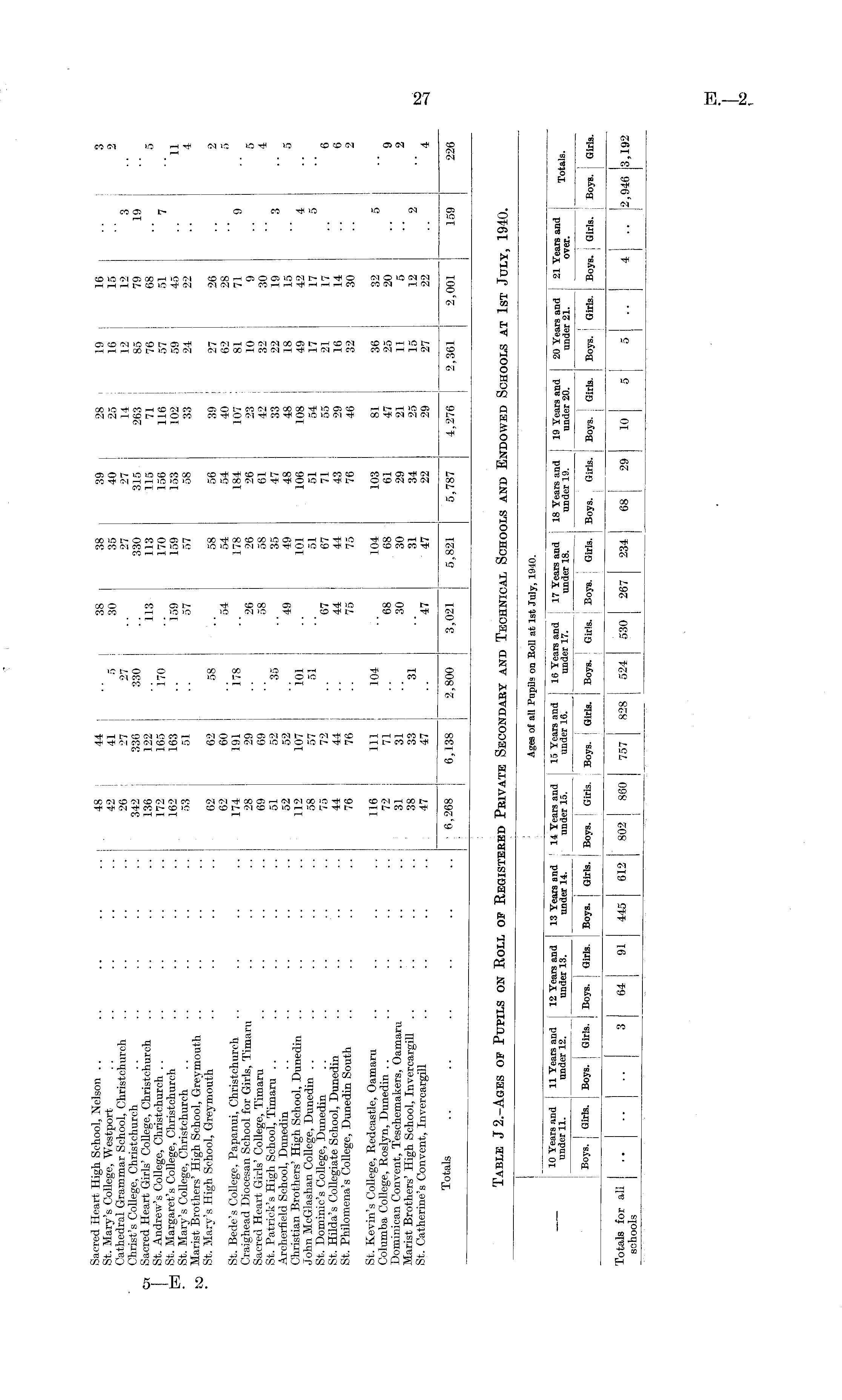 Table J2.-Ages of Pupils on Roll of Registered Private Secondary and Technical Schools and Endowed Schools at 1st July, 1940.