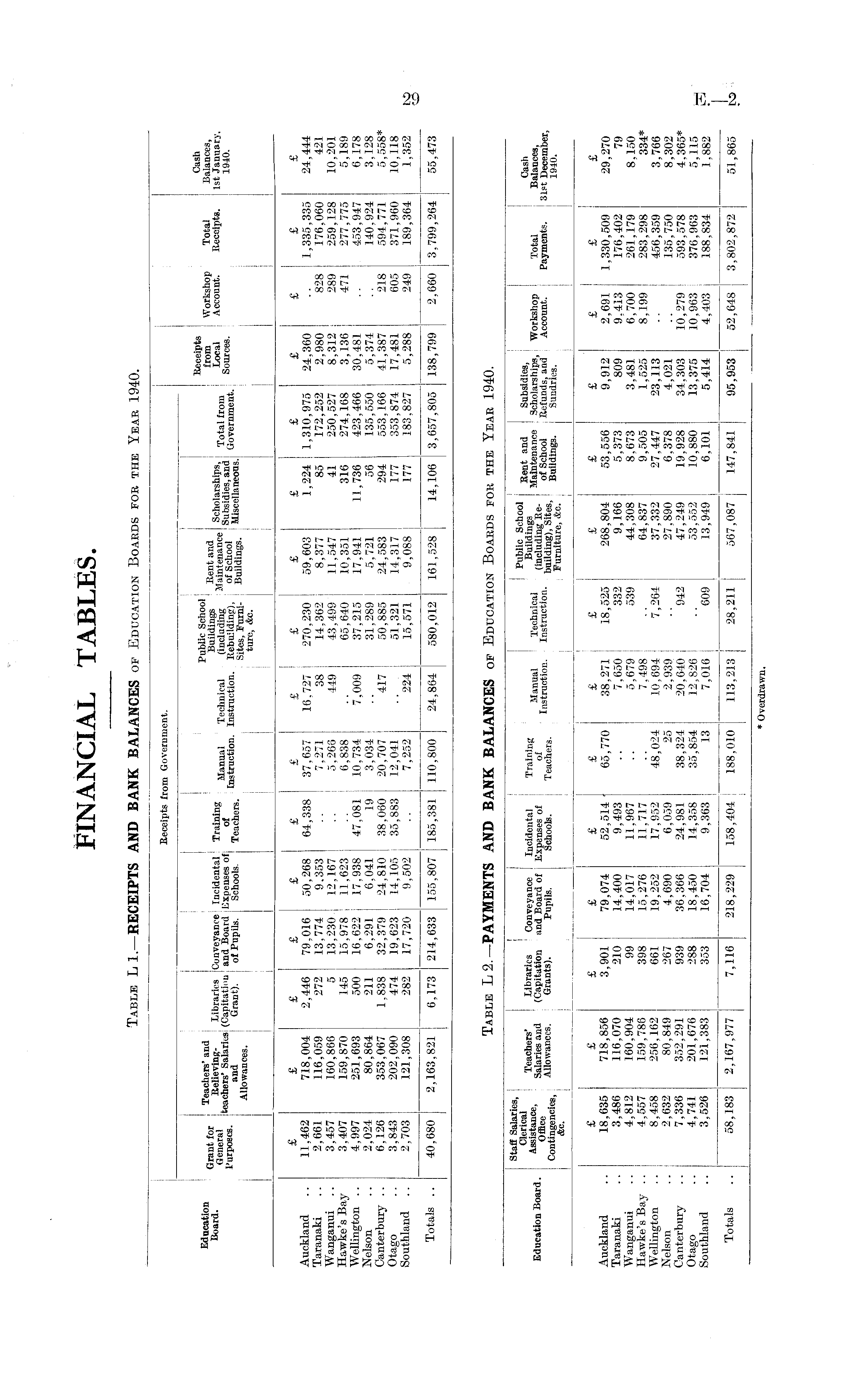 Table L2.—PAYMENTS AND BANK BALANCES of Education Boards for the Year 1940.