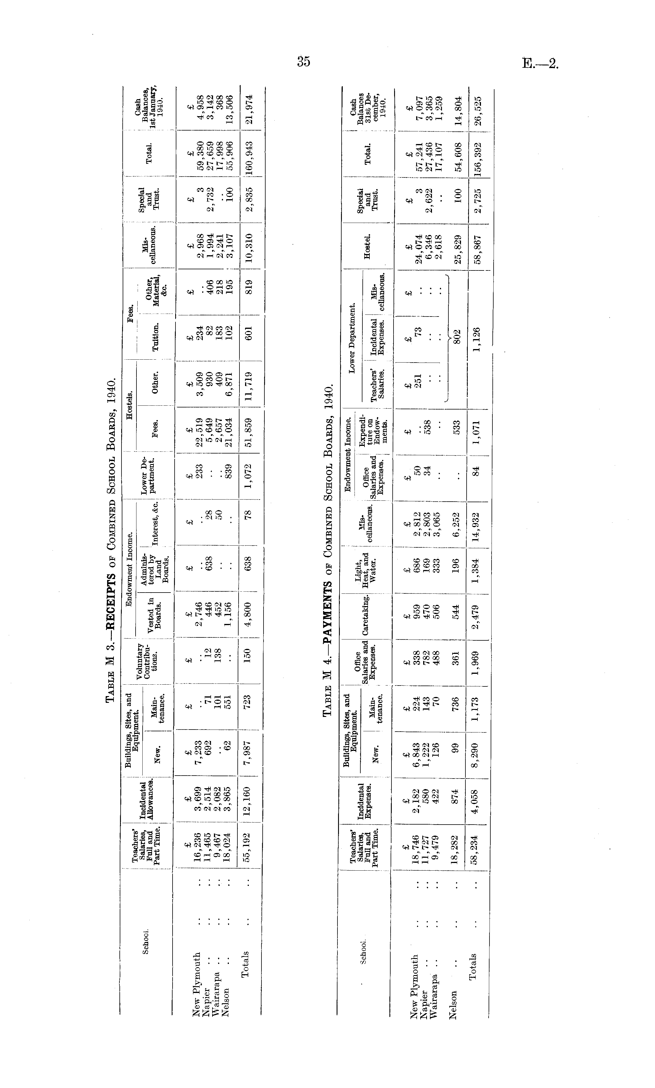 Table M 4.—PAYMENTS of Combined School Boards, 1940.