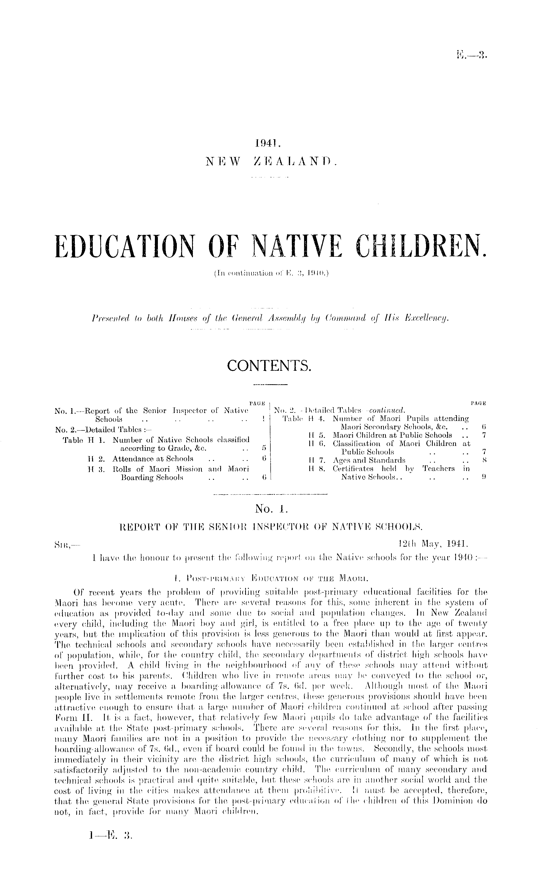 EDUCATION OF NATIVE CHILDREN. (In continuation of E.-3, 1940.)