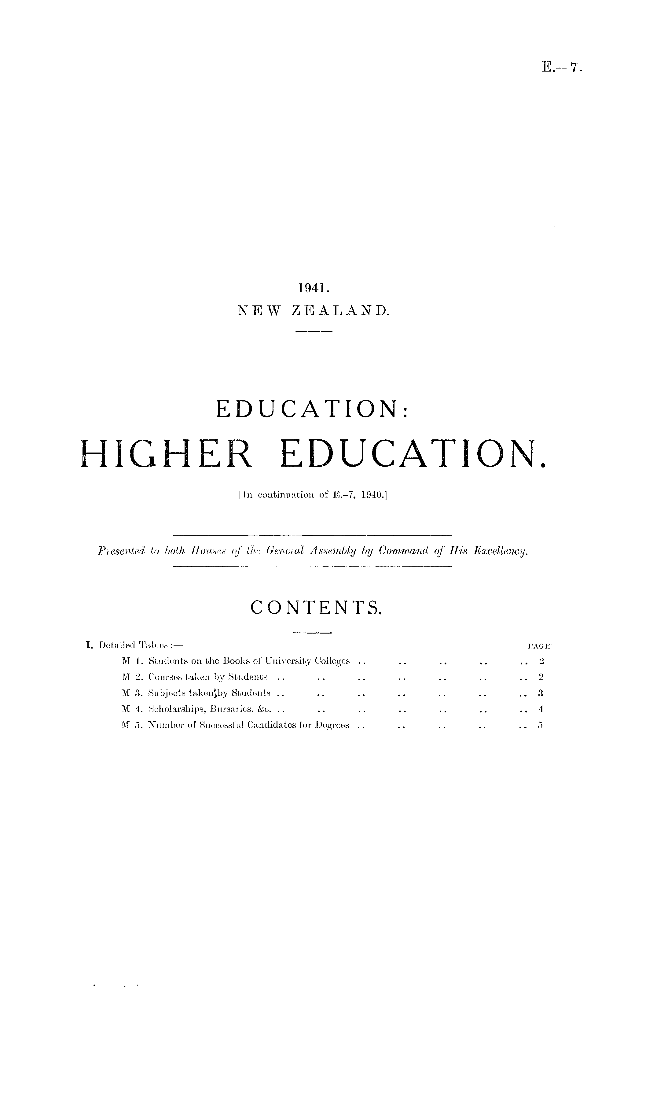 EDUCATION: HIGHER EDUCATION. [In continuation of E.-7, 1940.]