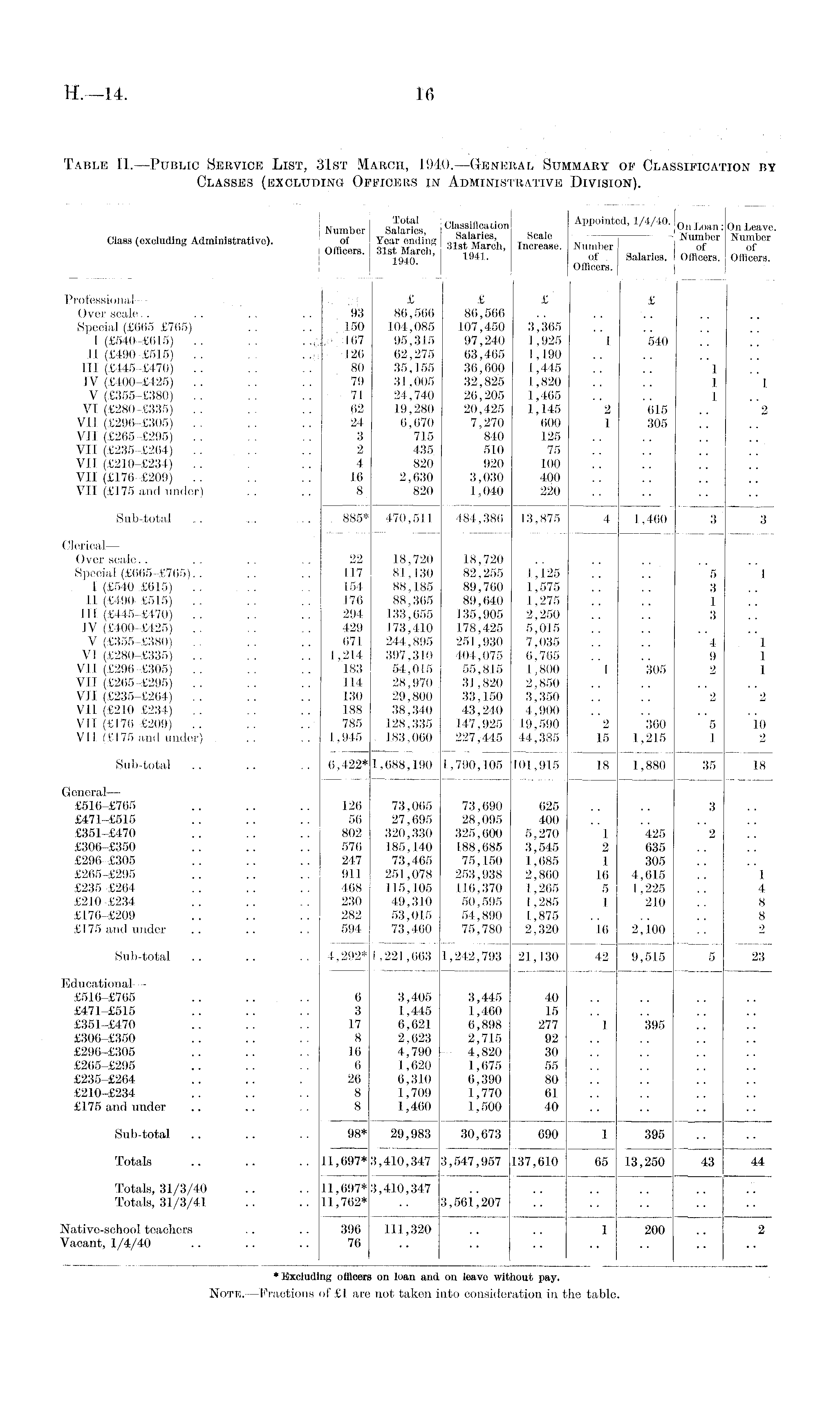 Table II.-Public Service List, 31st March, 1940.—General Summary of Classification by Classes (excluding Officers in Administrative Division).