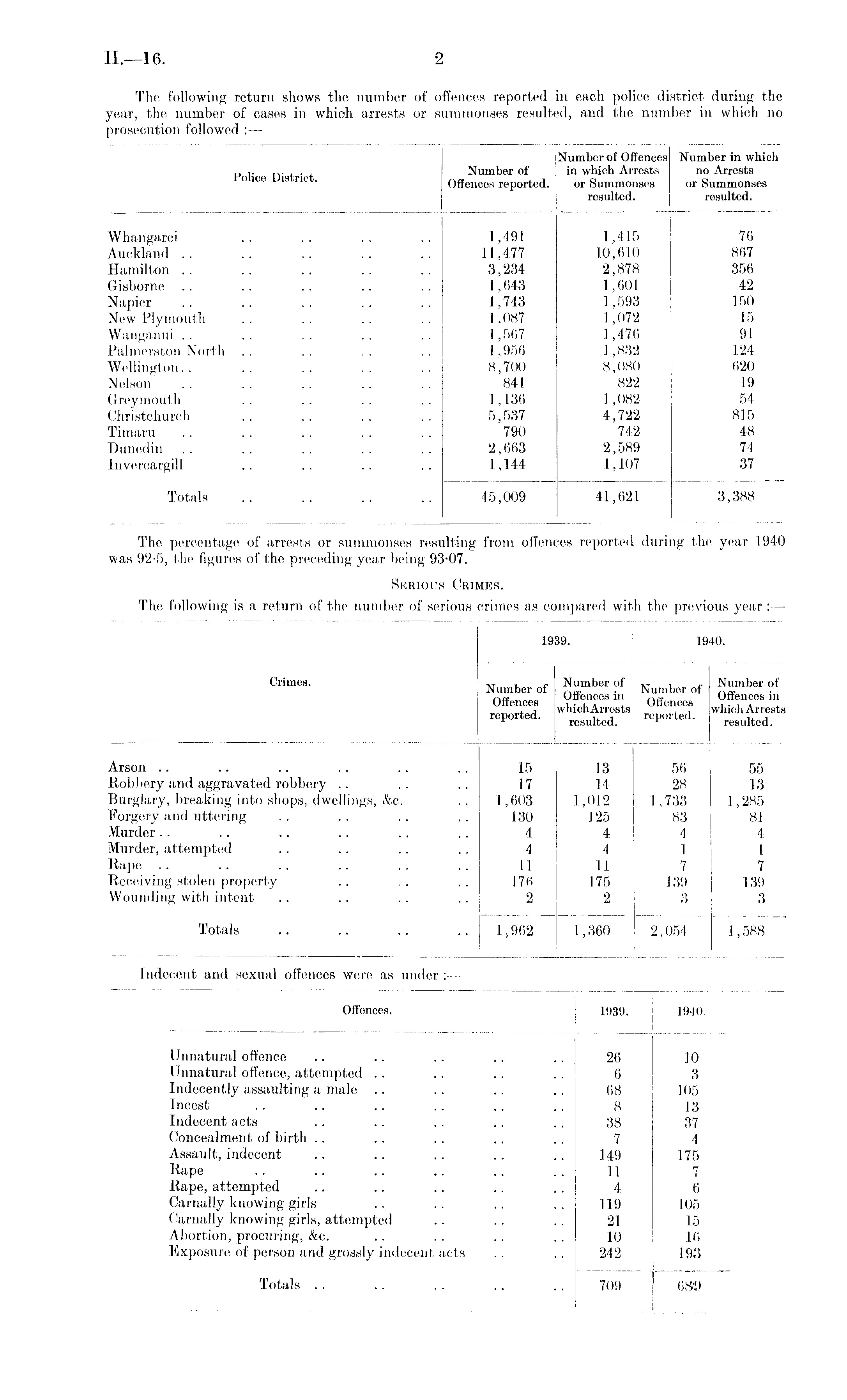 The percentage of arrests or summonses resulting from offences reported during the year 1940 was 92-5, the figures of the preceding year being 93-07. Serious Crimes. The following is a return of the number of serious crimes as compared with the previous year : —