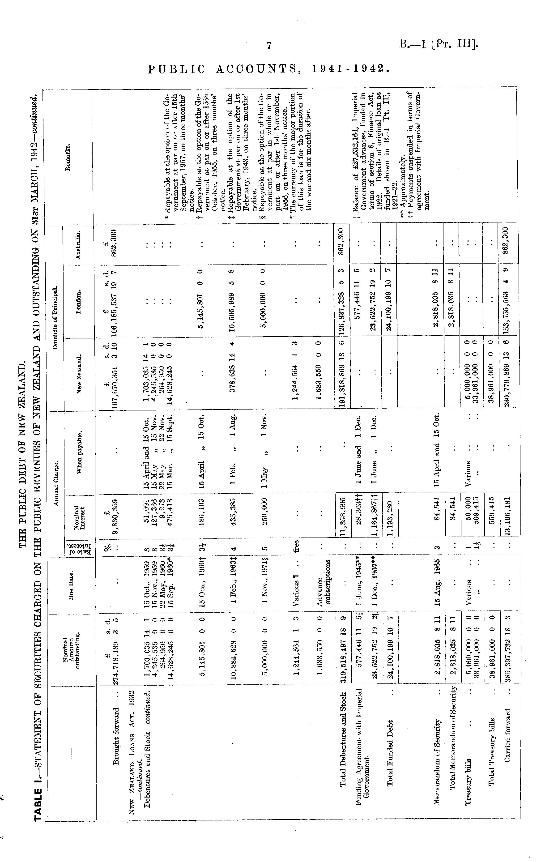 THE PUBLIC DEBT OF NEW ZEALAND. TABLE I.—STATEMENT OF SECURITIES CHARGED ON THE PUBLIC REVENUES OF NEW ZEALAND AND OUTSTANDING ON 31st MARCH, 1942—continued.