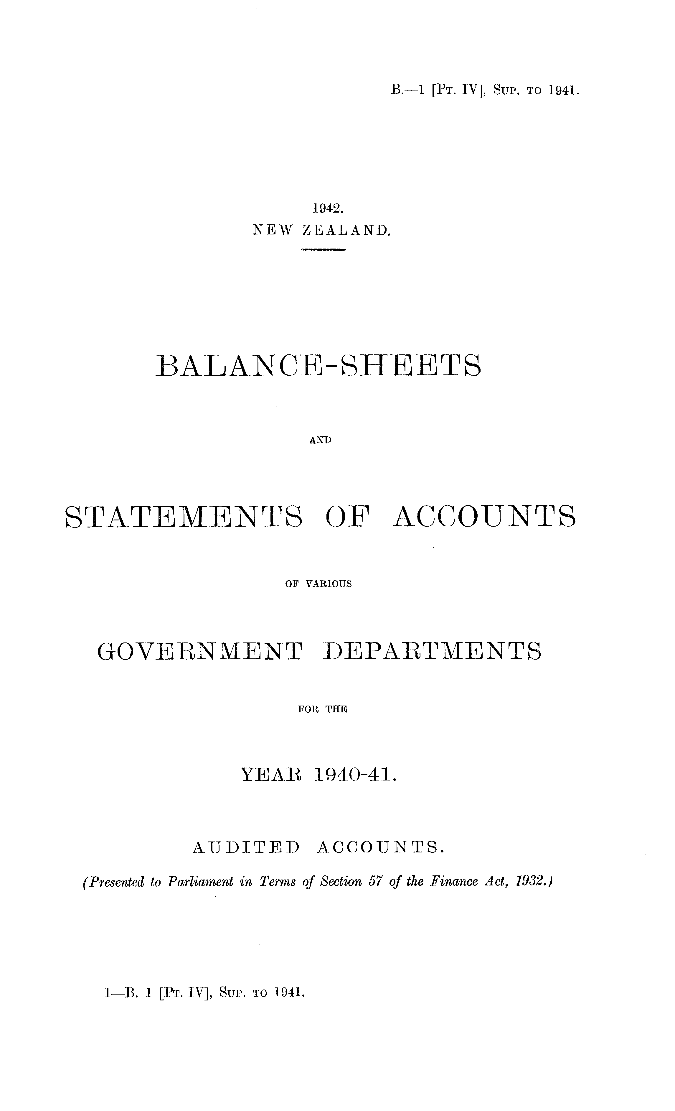 BALANCE-SHEETS AND STATEMENTS OF ACCOUNTS OF VARIOUS GOVERNMENT DEPARTMENTS FOR THE YEAR 1940-41. AUDITED ACCOUNTS. (Presented to Parliament in Terms of Section 57 of the Finance Act, 1932.)