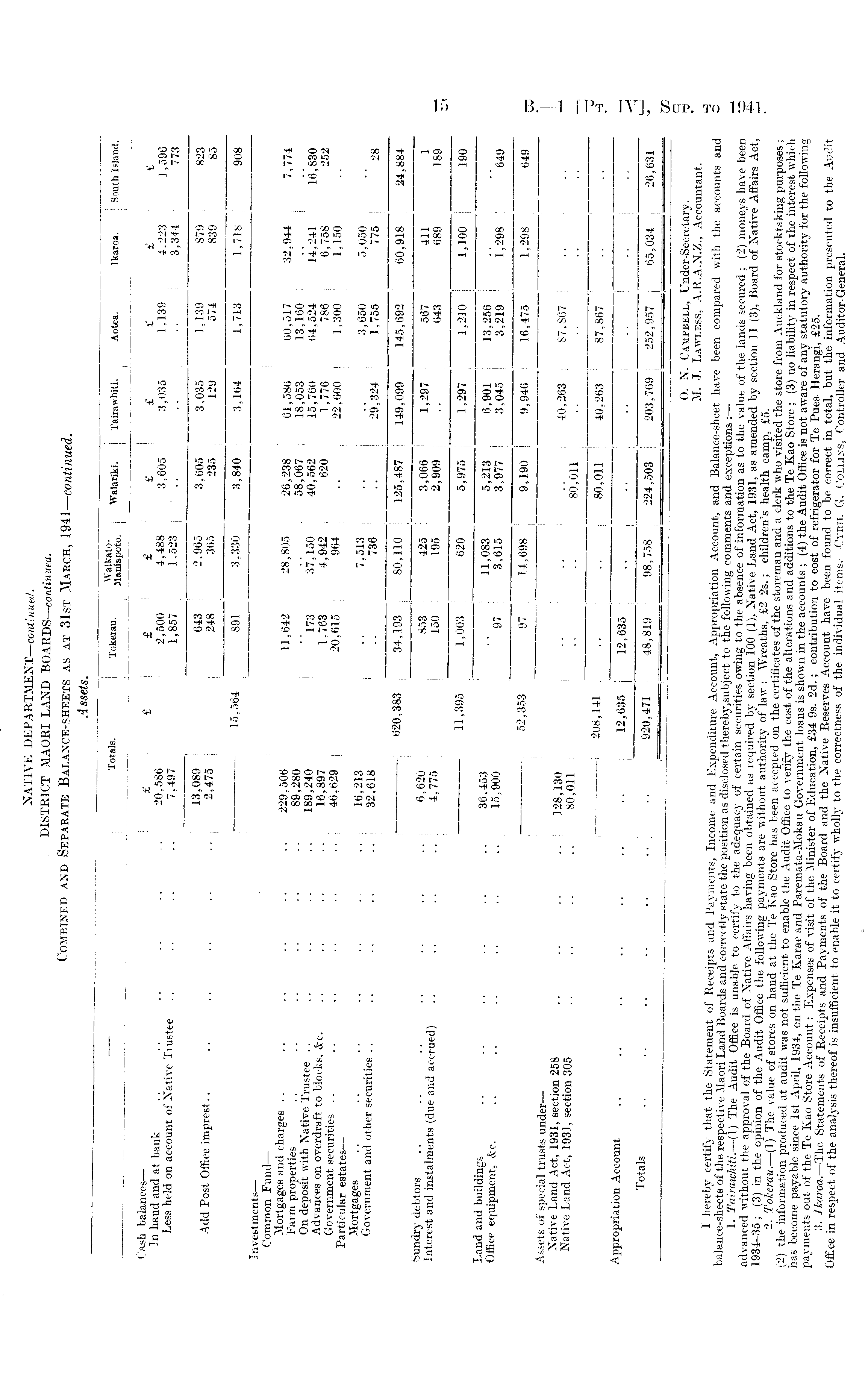NATIVE DEPARTMENT— continued. DISTRICT MAORI LAND BOARDS— continued. Combined and Separate Balance-sheets as at 31st March, 1941— continued. Assets.