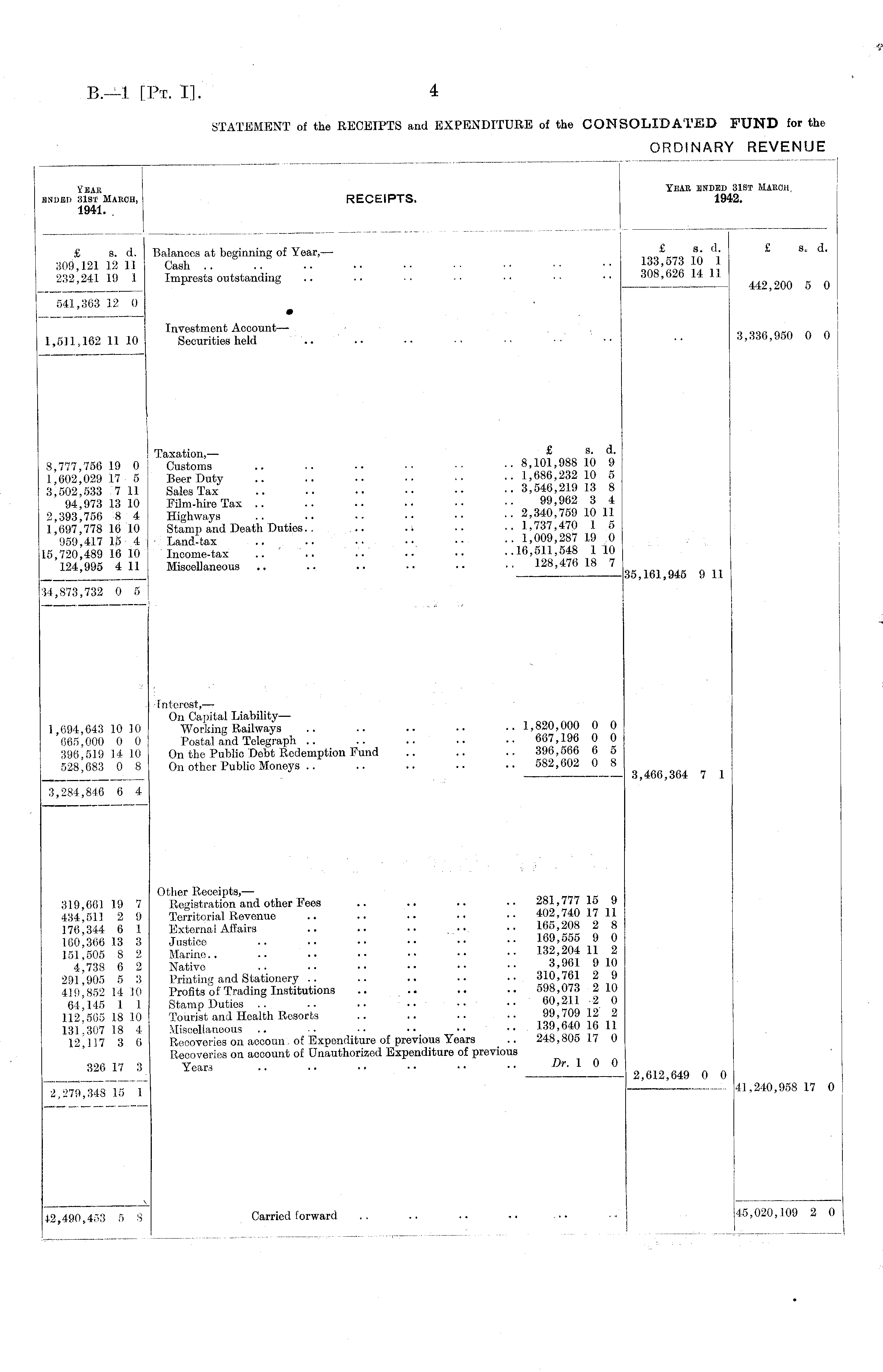 STATEMENT of the RECEIPTS and EXPENDITURE of the CONSOLIDATED FUND for the Year ended 31st March, 1942, compared with the Year ended 31st March, 1941.