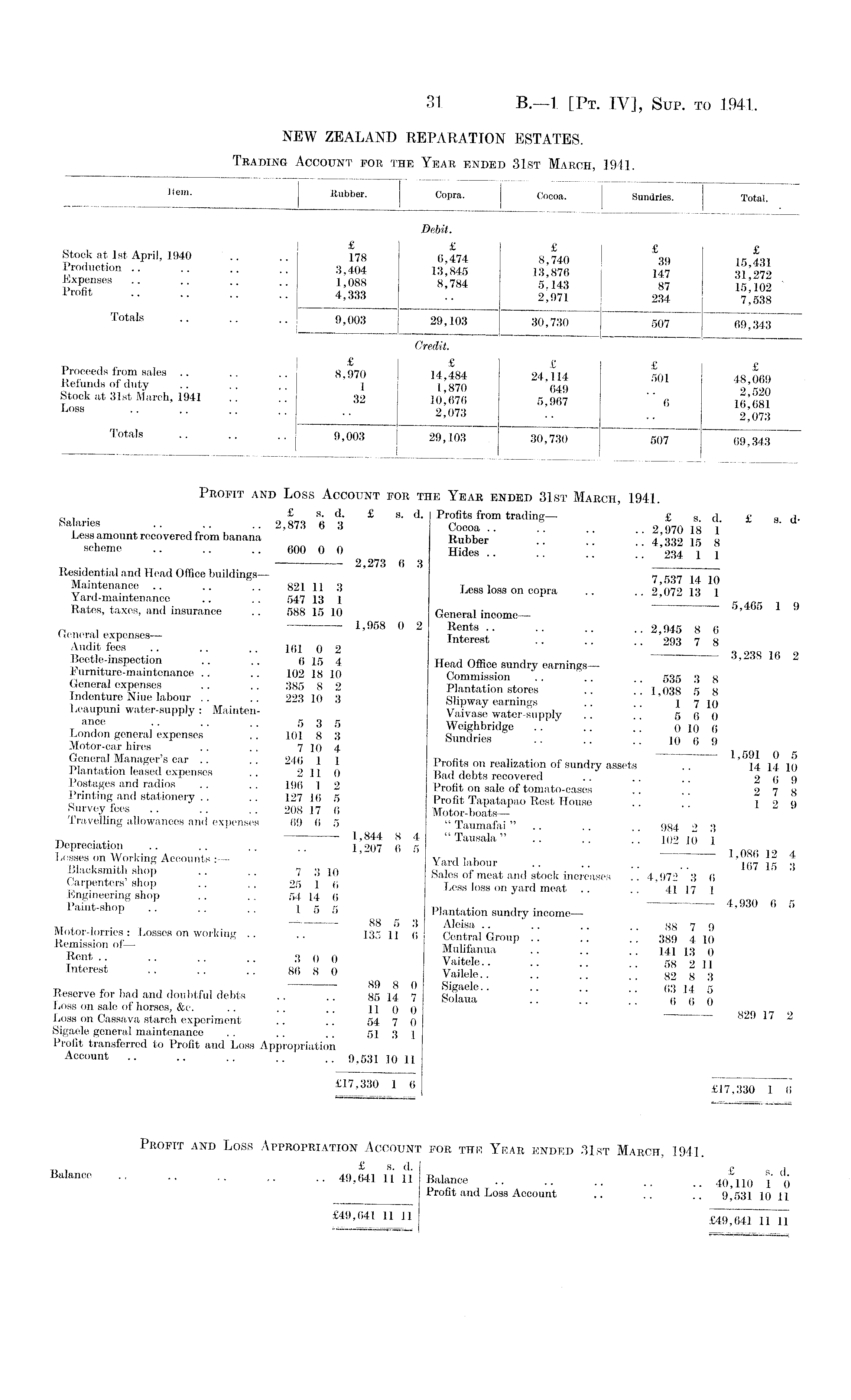 NEW ZEALAND REPARATION ESTATES. Trading Account for the Year ended 31st March, 1941.