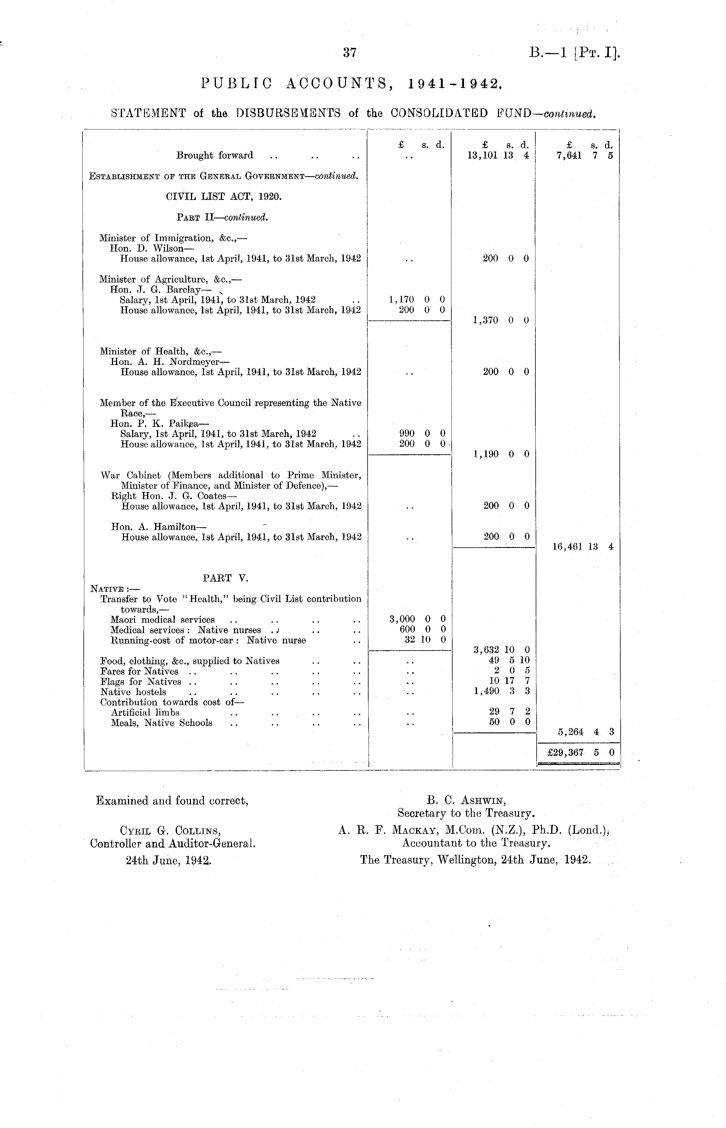 Examined and found correct, B. C. Ashwin, Secretary to the Treasury. Cyril G. Collins, A. R. P. Mackay, M.Com. (N.Z.), Ph.D. (Lond.')j Controller and Auditor-General. Accountant to the Treasury. 24th June, 1942. The Treasury, Wellington, 24th. June, 1942.