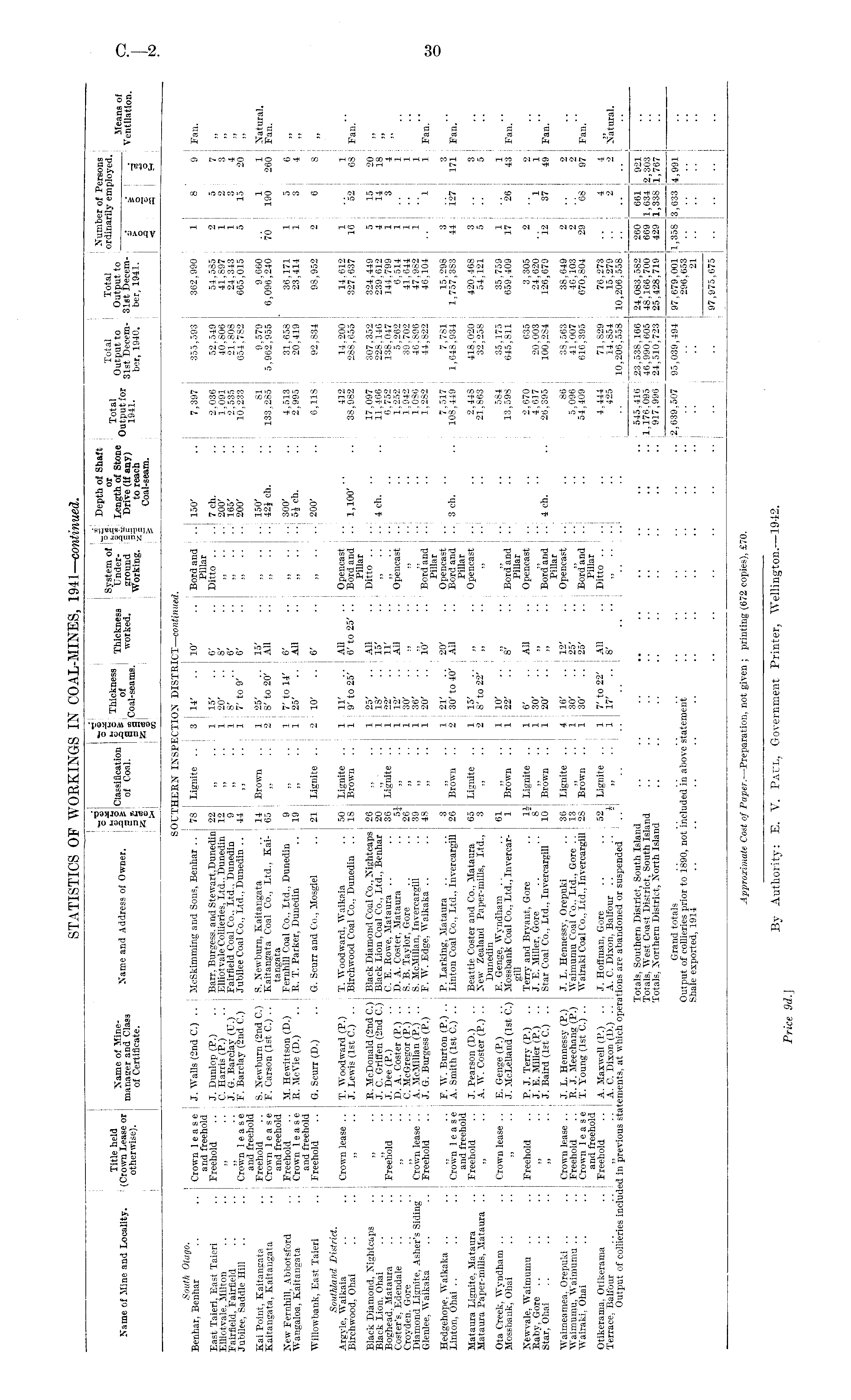 STATISTICS OF WORKINGS IN COAL-MINES, 1941—continued.