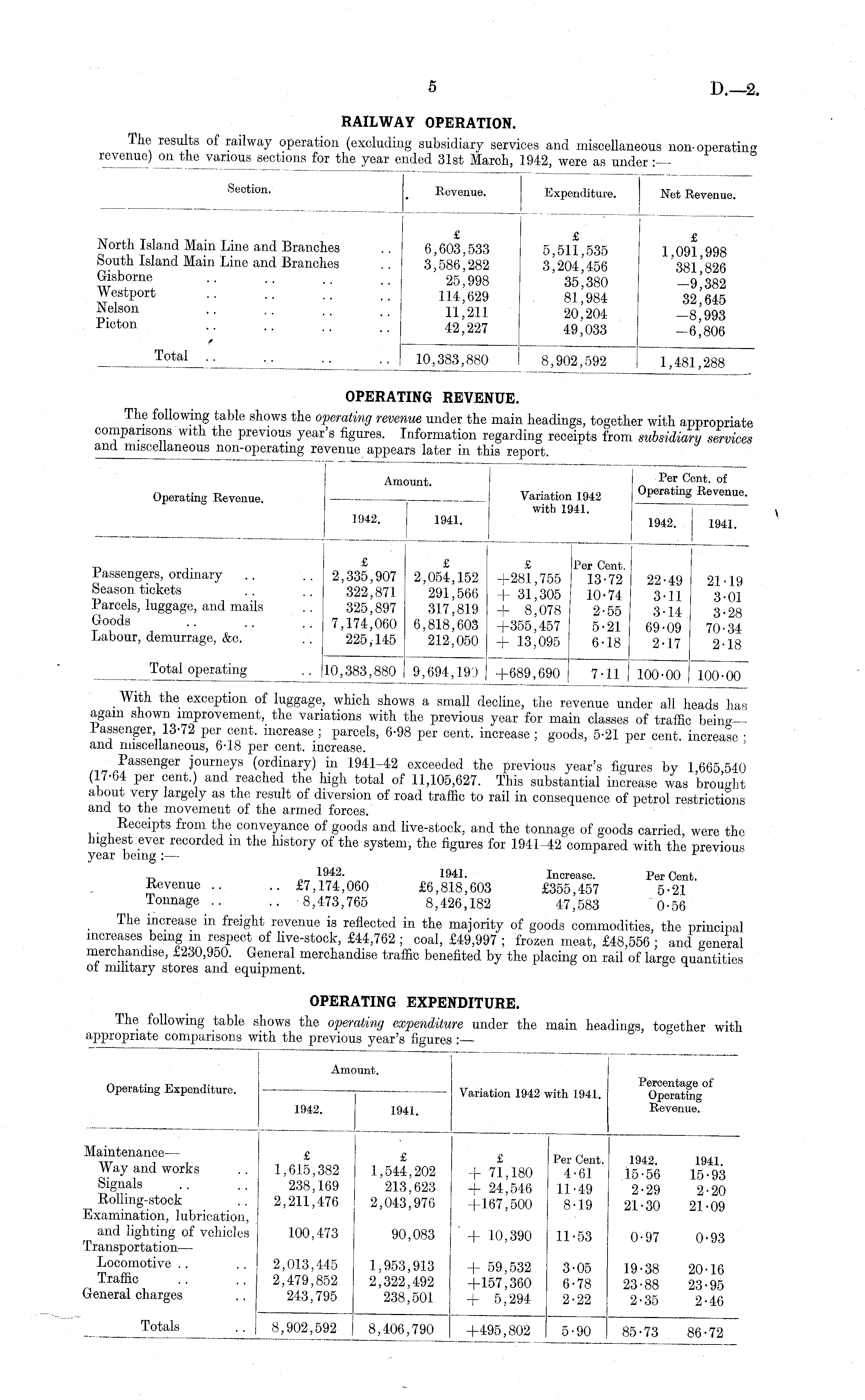 RAILWAY OPERATION. lhe results of railway operation (excluding subsidiary services and miscellaneous non-operating revenue) on the various sections for the year ended 31st March, 1942, were as under