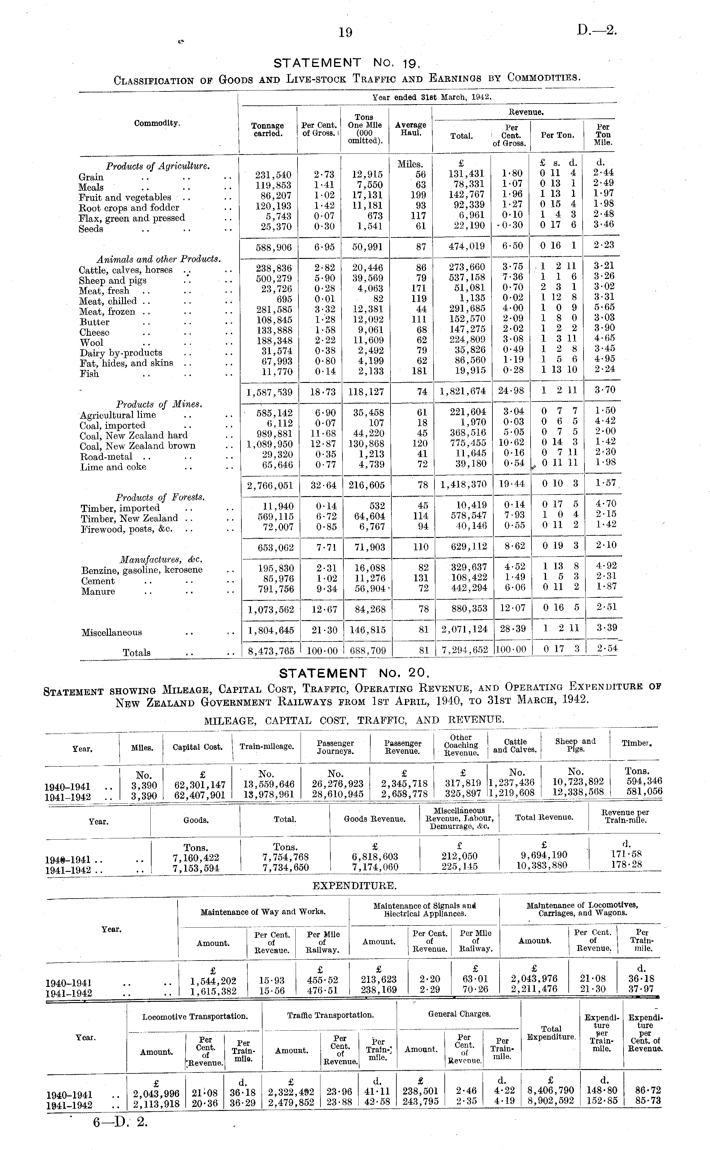STATEMENT No. 20. Statement showing Mileage, Capital Cost, Traffic, Operating Revenue, and Operating Expenditure of New Zealand Government Railways from 1st April, 1940, to 31st March, 1942. MILEAGE, CAPITAL COST, TRAFFIC, AND REVENUE.