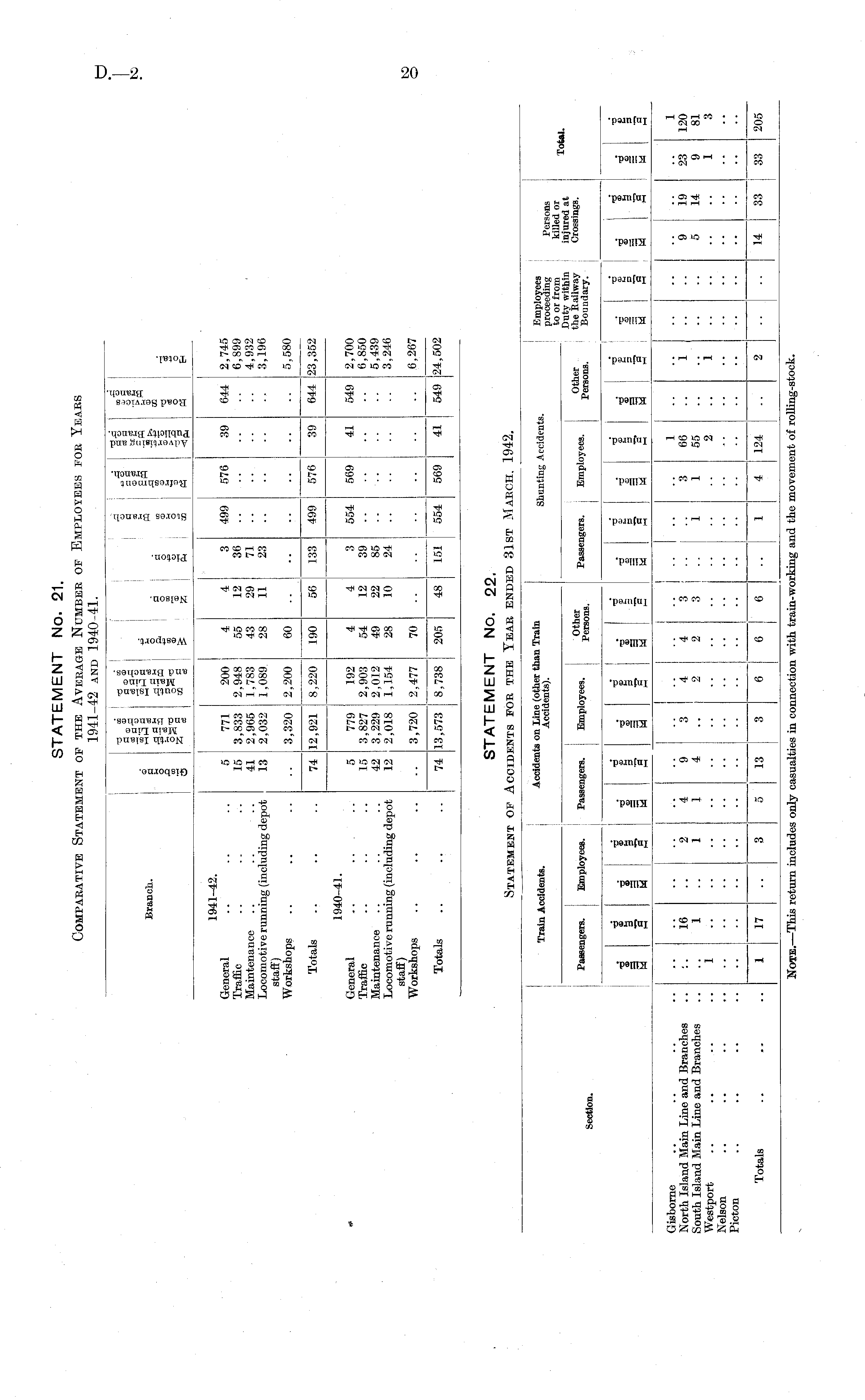STATEMENT No. 22. Statement of Accidents for the Year ended 31st March, 1942.