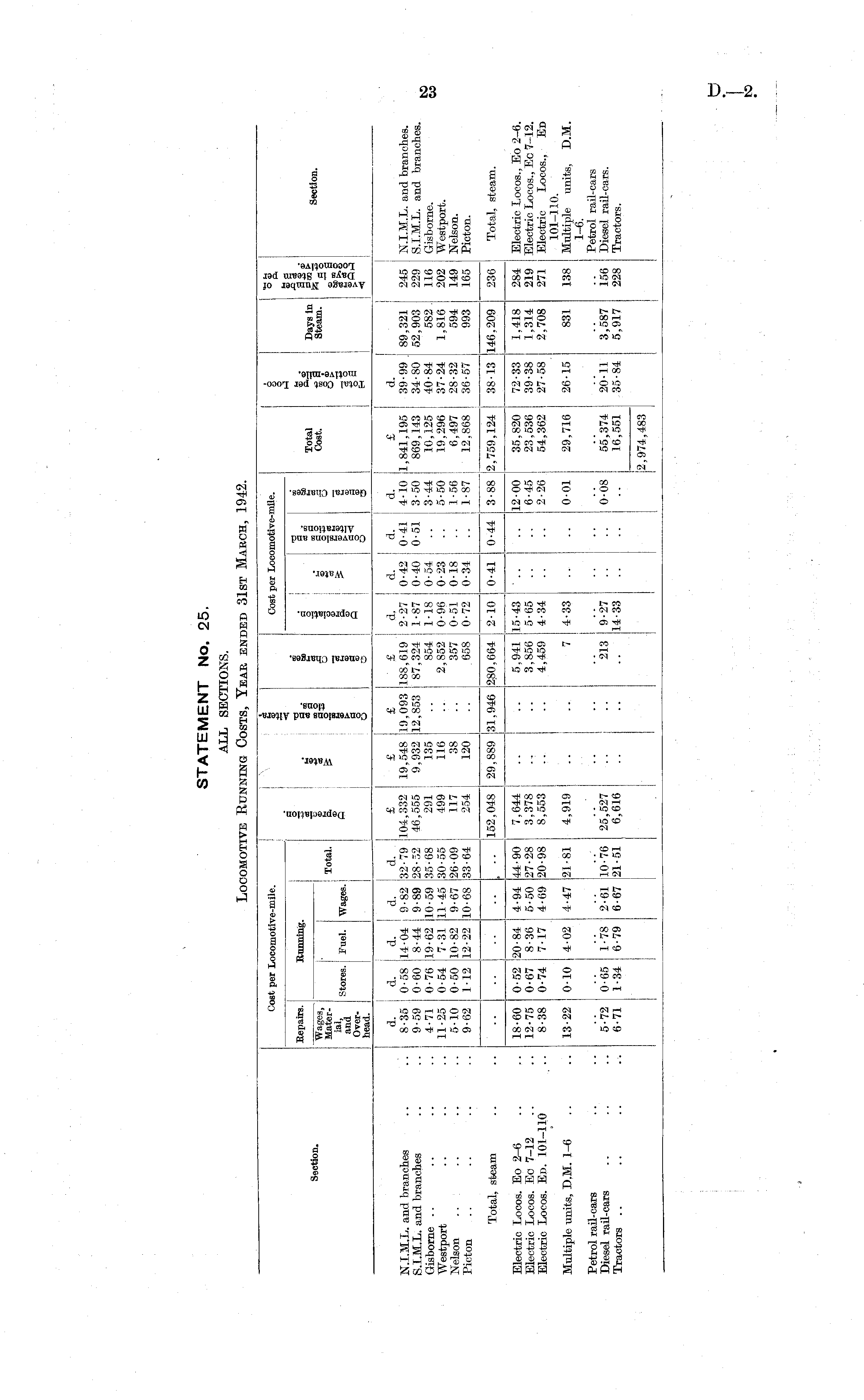 STATEMENT No. 25. ALL SECTIONS. Locomotive Running Costs, Year ended 31st March, 1942.