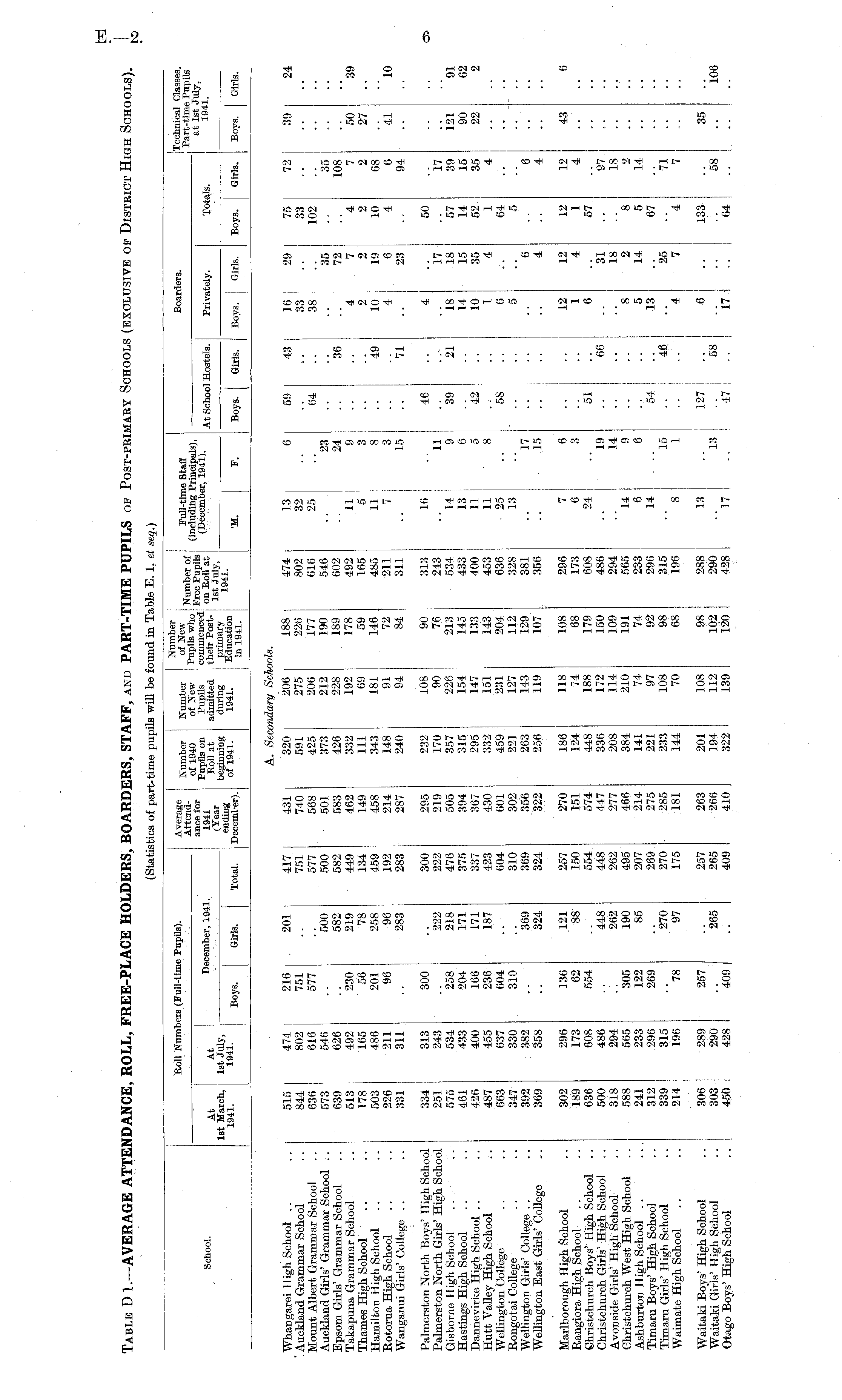 Table D1.—AVERAGE ATTENDANCE, ROLL, FREE-PLACE HOLDERS, BOARDERS, STAFF, and PART-TIME PUPILS of Post-primary Schools (exclusive of District High Schools).