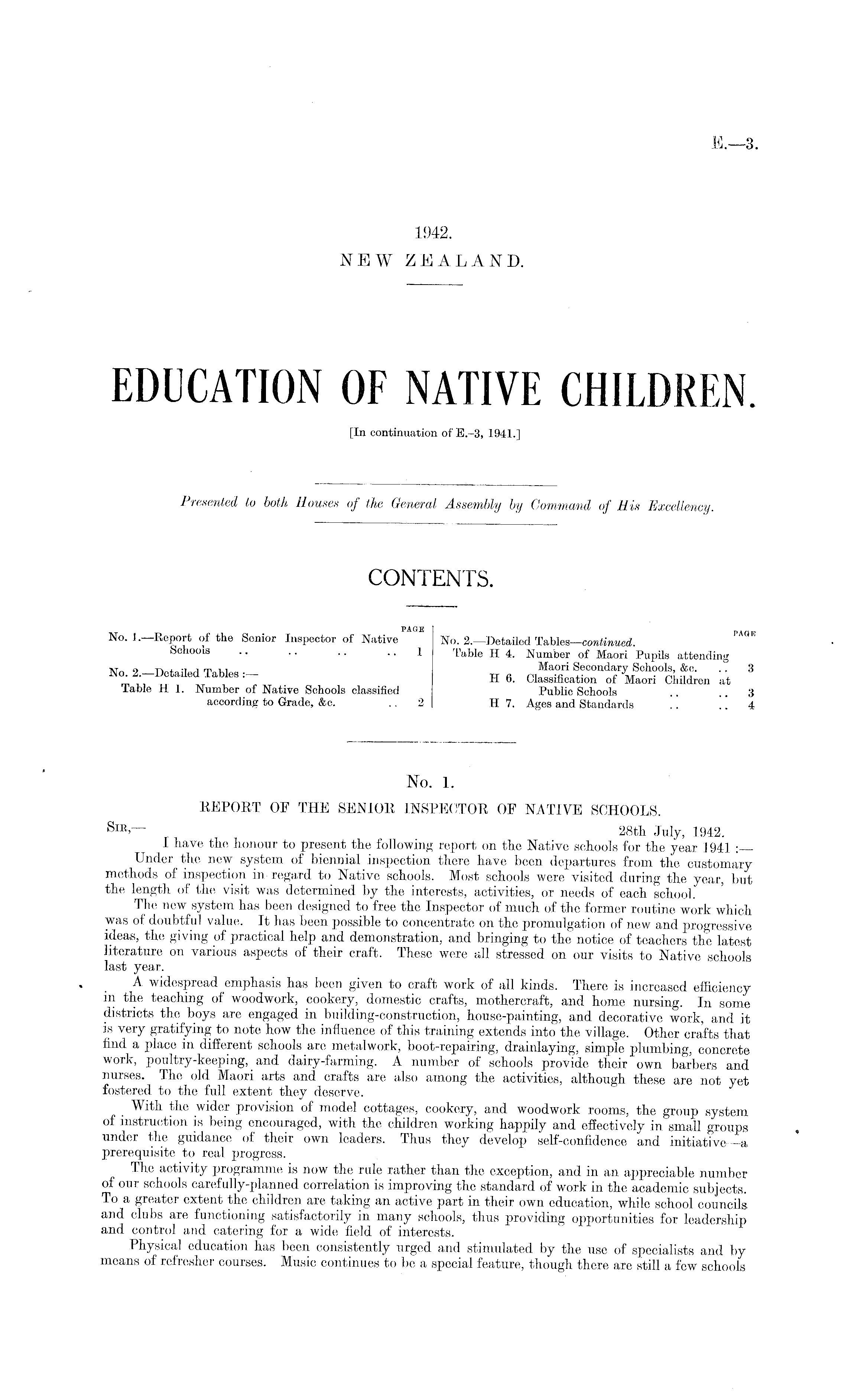 EDUCATION OF NATIVE CHILDREN. [In continuation of E.-3, 1941.]