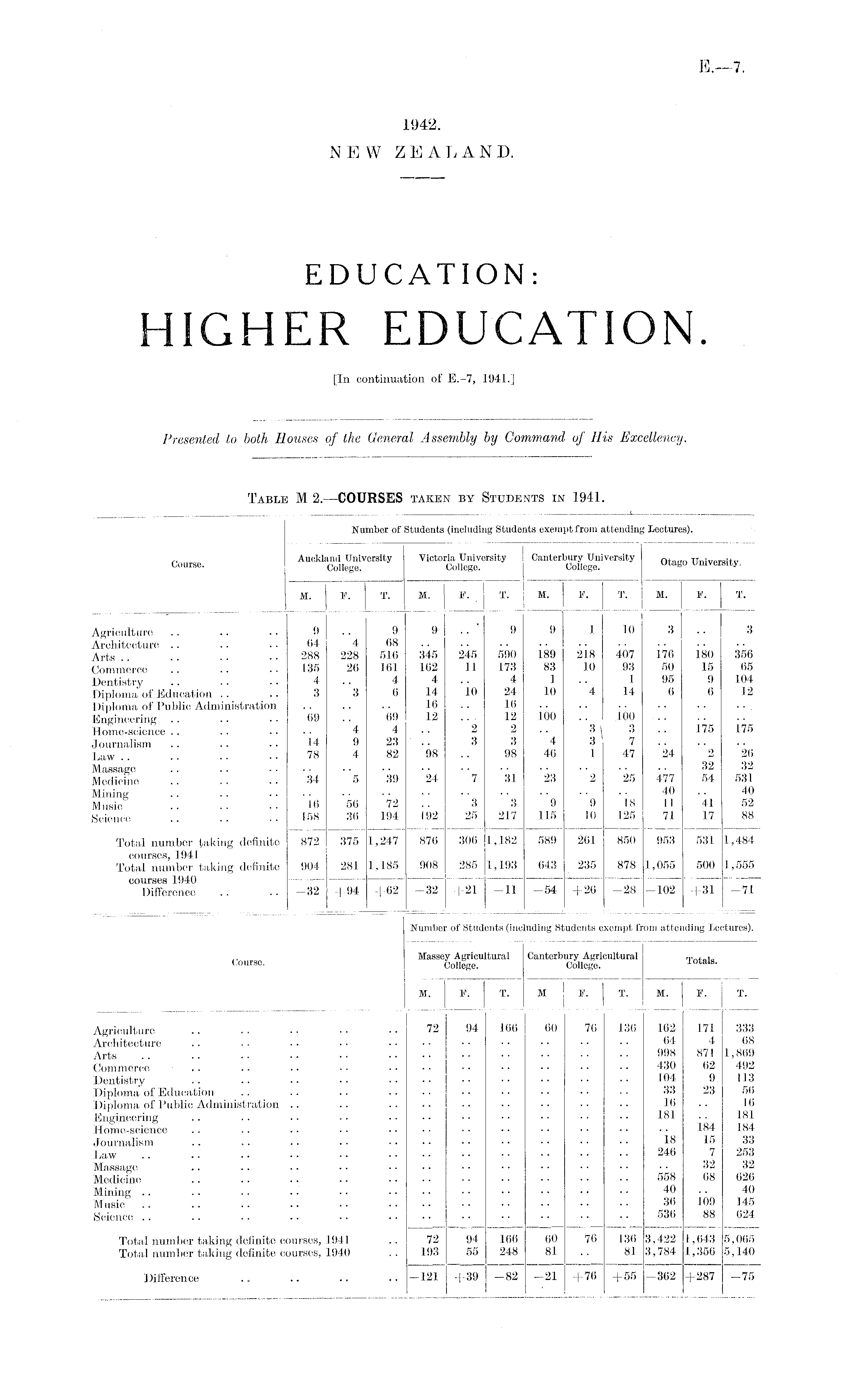 EDUCATION: HIGHER EDUCATION. [In continuation of E.-7, 1941.]