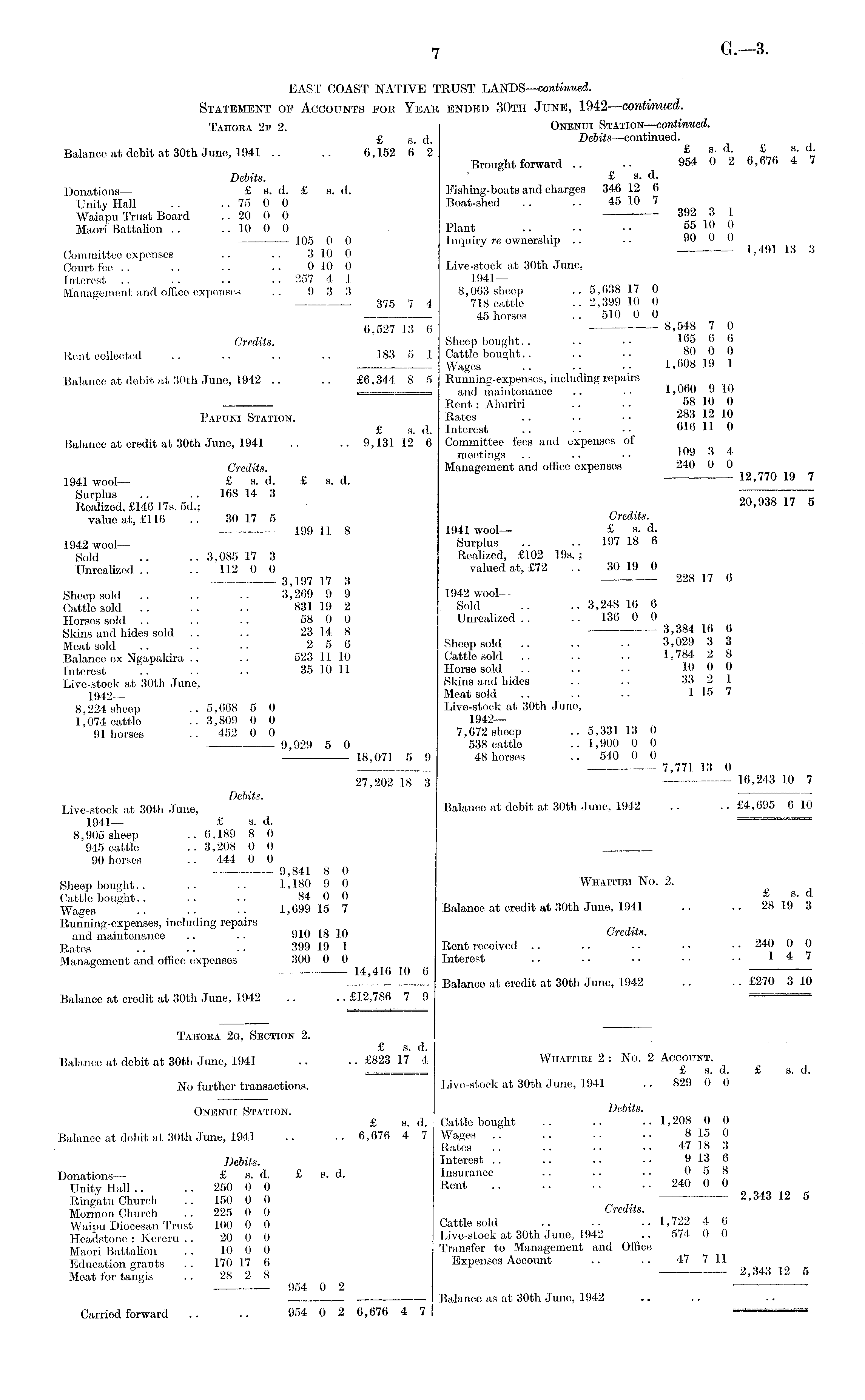 EAST COAST NATIVE TRUST LANDS—continued. Statement op Accounts for Year ended 30th June, 1942 —continued. Tahora 2f 2. Onbntji Station —continued. £ s , t [. Debits—continued. Balance at debit at 30th June, 1941 .. 6,152 6 2 £ d - f d „ Brought forward .. .. 954 0 2 6,676 4 7 Debits. £ s. d. Donations — £ s. d. £ s. d. Eishing-boats and charges 346 12 6 Unity Hall .. .. 75 0 0 Boat-shed .. .. 45 10 7 _ Waiapu Trust Board .. 20 0 0 392 3 1 Maori Battalion .. .. 10 0 0 Plant .. .. • • *>5 10 0 105 0 0 Inquiry re ownership .. . • 90 O 0 Committee expenses .. .. 310 0 1,491 13 3 Court fee .. .. .. • • 0 10 0 Live-stock at 30th June, Interest .. .. . ■ ■ ■ 257 4 1 1941— Management and office expenses .. 9 3 3 8,063 sheep .. 5,638 17 0 — 375 7 4 718 cattle .. 2,399 10 0 — 45 horses .. 510 0 0 6,527 13 6 8 - 5 -J8 7 0 Credits. Sheep bought.. .. •• 165 6 6 Rent collected .. .. .. .. 183 5 1 Cattle bought.. .. •• 80 0 0 Wages .. . ■ • - 1,608 1.) I Balance at debit at 30th June, 1942 .. .. £6,344 8 5 Running-expenses, including repairs i and maintenance .. . ■ 1 > 060 910 Rent: Ahuriri .. ■ • 58 10 0 Paptjni Station. Rates .. .. • • 283 12 10 £ s. d. Interest .. .. • • W 11 0 Balance at credit at 30th June, 1941 .. .. 9,131 12 6 Committee fees and expenses of meetings .. .. ■ ■ 109 3 4 Credits. Management and office expenses 240 0 0 1941 wool— £ s. d. £ s. d. 12,770 19 7 Surplus .. .. 168 14 3 Realized, £146175. 5d.; 20,938 17 5 value at, £116 30 17 5 Credits. 199 11 8 1941 wool— £ s. d. 1942 wool— Surplus .. . ■ 197 18 6 Sold .. .. 3,085 17 3 Realized, £102 195.; Unrealized .. .. 112 0 0 valued at, £72 .. 30 19 0 — 3,197 17 3 228 17 6 Sheep sold .. .. .. 3,269 9 9 1942 wool— Cattle sold 831 19 2 Sold .. ..3,248 16 6 Horses sold .. .. .. 58 0 0 Unrealized.. .. 136 0 0 Skins and hides sold .. .. 23 14 8 3 >384 16 6 Meat sold .. .. .. 2 5 6 Sheep sold .. .. •• 3,029 3 3 Balance ex Ngapakira .. .. 523 11 10 Cattle sold .. .. •• ' ~ Interest .. .. •• 35 10 11 Horse sold .. .. 10 0 0 Live-stock at 30th June, Skins and hides .. .. 33 2 1 1942 Meat sold .. .. • ■ 115 7 8,224 sheep .. 5,668 5 0 Live-stock at 30th June, 1,074 cattle ..3,809 0 0 1942— 91 horses .. 452 0 0 7,672 sheep .. 5,331 13 0 9,929 5 0 538 cattle .. 1,900 0 0 18,071 5 9 48 horses .. 540 0 0 — 7,771 13 0 27,202 18 3 16,243 10 7 Debits. Live-stock at 30th June, Balance at debit at 30th June, 1942 .. ..£4,695 6 10 1941— £ S- d. 8,905 sheep .. 6,189 8 0 945 cattle .. 3,208 0 0 90 horses .. 444 0 0 9,841 8 0 Sheep bought 1,180 9 0 Whaitiei No. 2. Cattle bought.. .. .. 84 0 0 „ 8 ' f Wages .. .. •• 1,699 15 7 Balance at credit at 30th June, 1941 .. .. 28 19 3 Running-expenses, including repairs and maintenance .. .. 910 18 10 Credits. Rates .. .. • • 399 19 1 Rent received .. .. ■ • • • • • 240 0 0 Management and office expenses 300 0 0 Interest .. •• ■■ •• 147 14,416 10 6 Balance at credit at 30th June, 1942 .. .. £270 3 10 Balance at credit at 30th June, 1942 .. .. £12,786 7 9 Tahoba 2a, Section 2. £ s. d. Balance at debit at 30th June, 1941 .. .. £823 17 4 Whaitibi 2 : No. 2 Account. £ s. d. £ s. d. No further transactions. Live-stoek at 30th June, 1941 .. 829 0 0 Onenui Station. Debits. £ s. d. Cattle bought .. .. .. 1,208 0 0 Balance at debit at 30th June, 1941 .. .. 6,676 4 7 Wages .. .. •• •• 815 0 Rates .. .. .. •• 47 18 3 Debits. Interest .. .. .. •• 9136 Donations— £ s. d. £ s. d. Insurance J J Unity Hall.. .. 250 0 0 Rent 240 0 0 Ringatu Church 150 0 0 ' 2,343 12 o Mormon Church .. 225 0 0 Credits. Waipu Diocesan Trust 100 0 0 Cattle sold .. . . ■■ f « Headstone: Kereru .. 20 0 0 Live-stock at 30th June, 1942 .. 574 0 0 Maori Battalion .. 10 0 0 Transfer to Management and Office Education grants .. 170 17 6 Expenses Account .. .. 47 7il Meat for tangis .. 28 2 8 2,343 12 5 954 0 2 Balance as at 30th June, 1942 Carried forward .. .. 954 0 2 6,676 4 7