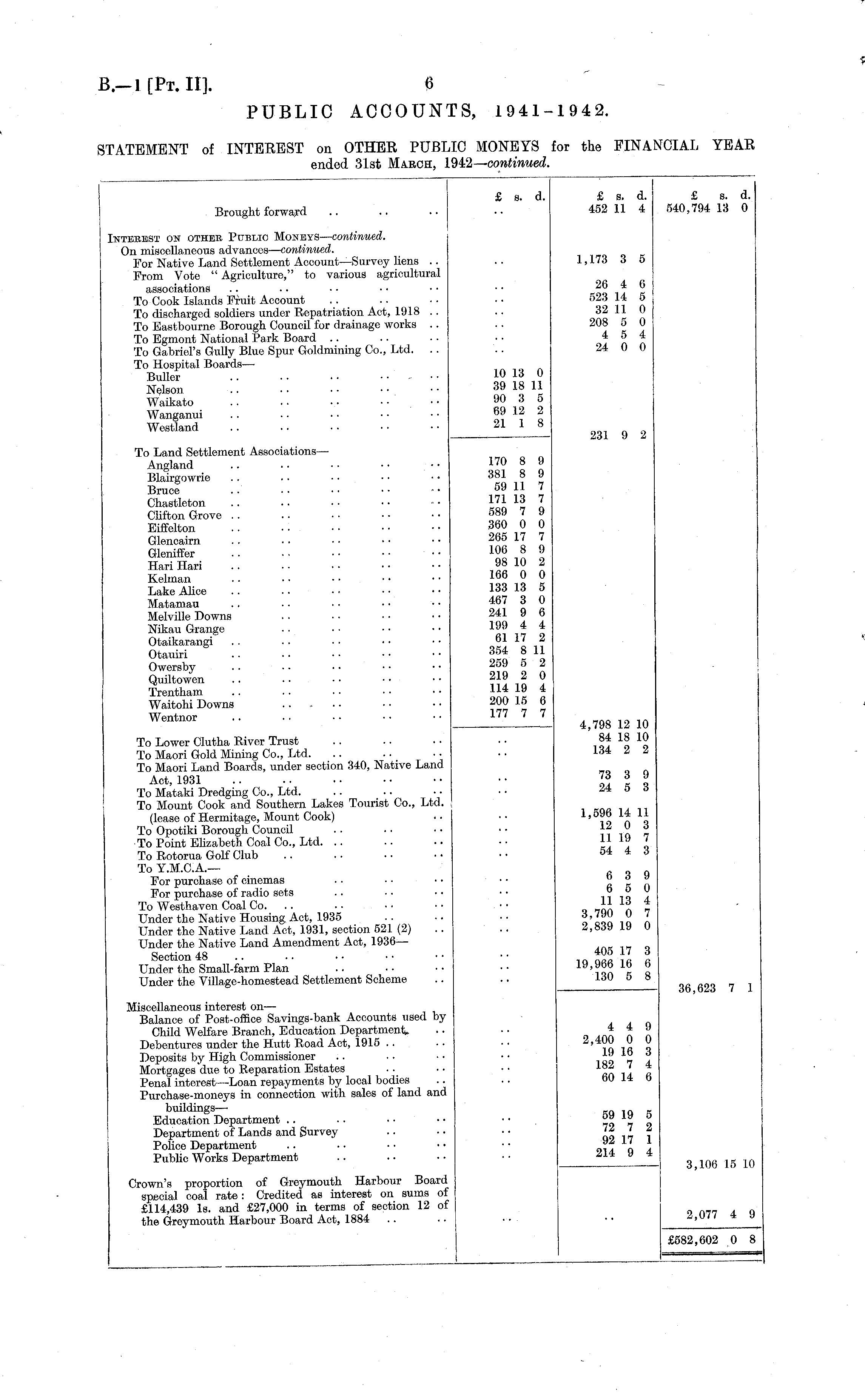 STATEMENT of INTEREST on OTHER PUBLIC MONEYS for the FINANCIAL YEAR ended 31st March, 1942—continued.