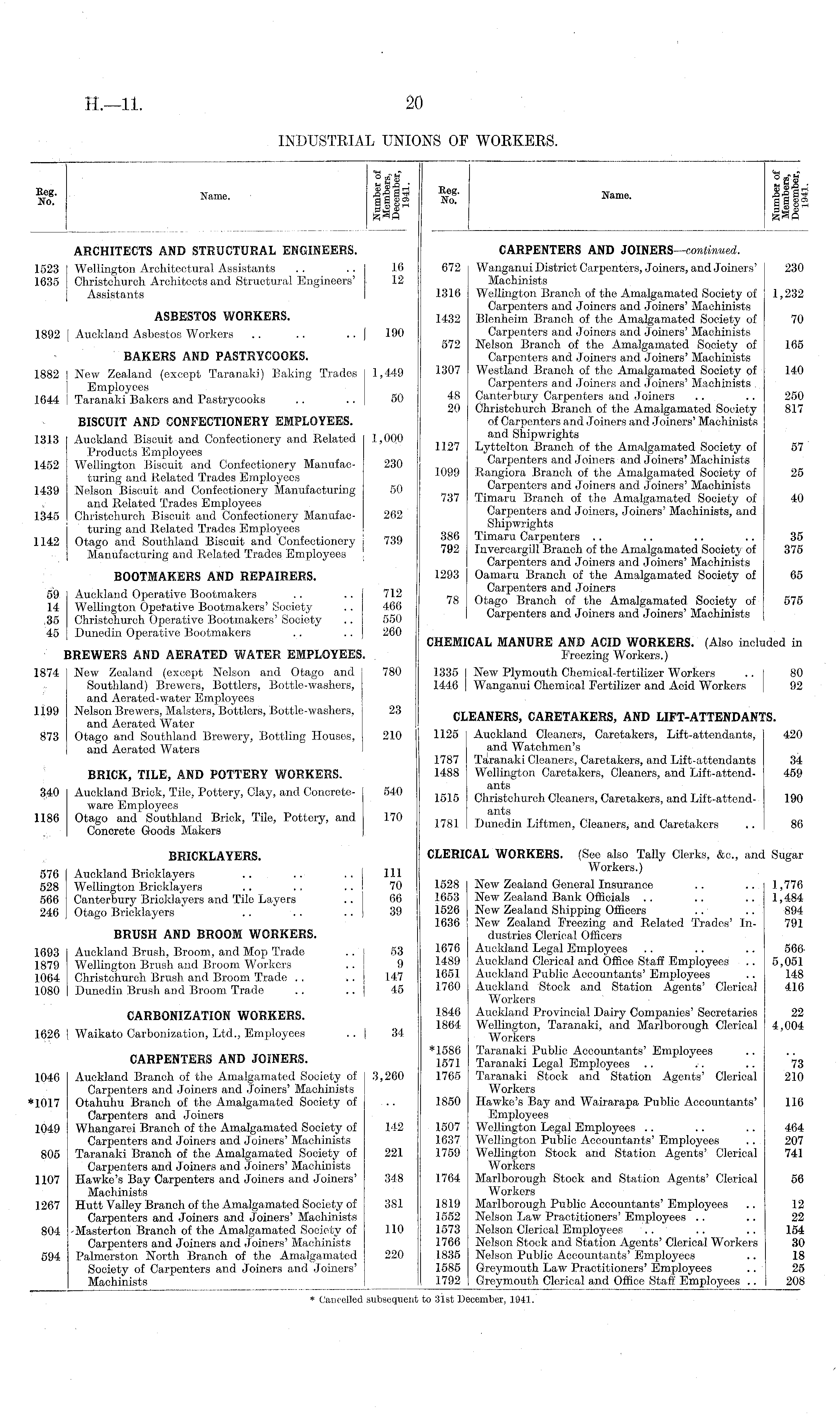 • °(5"1 . 0 g - Name. |||S Name. ||fg °«g H ARCHITECTS AND STEUCTURAL ENGINEERS. CARPENTERS AND JOINERS —continued. 1523 i Wellington Architectural Assistants .. .. 16 672 Wanganui District Carpenters, Joiners, and J oiners' 230 1635 | Christchurch Architects and Structural Engineers' 12 Machinists Assistants 1316 Wellington Branch of the Amalgamated Society of 1,232 Carpenters and Joiners and Joiners' Machinists ASBESTOS WORKERS. 1432 Blenheim Branch of the Amalgamated Society of 70 1892 | Auckland Asbestos Workers .. .. .. | 190 Carpenters and Joiners and Joiners'Machinists 572 Nelson Branch of the Amalgamated Society of 165 BAKERS AND PASTRYCOOKS. Carpenters and Joiners and Joiners' Machinists 1882 ! New Zealand (except Taranaki) Baking Trades 1,449 1307 Westland Branch of the Amalgamated Society of 140 Employees Carpenters and Joiners and Joiners' Machinists 1644 1 Taranaki Bakers and Pastrycooks .. .. 50 48 Canterbury Carpenters and Joiners .. .. 250 20 Christchurch Branch of the Amalgamated Society 817 BISCUIT AND CONFECTIONERY EMPLOYEES. of Carpenters and Joiners and Joiners'Machinists 1313 Auckland Biscuit and Confectionery and Related 1,000 and Shipwrights _ Products Employees 27 L yttelton Branch ot the Amalgamated Society of 57 1452 Wellington Biscuit and Confectionery Manufac- 230 1Ann Carpenters and Joiners and Joiners' Machinists taring and Related Trades Employees 1099 Ra?giora Branch of the Amalgamated Society of 25 1439 Nelson Biscuit and Confectionery Manufacturing 50 „„„ Carpenters and Joiners and Joiners Machinists and Related Trades Employees 737 Timaru Branch of the Amalgamated Society of 40 1345 Christchurch Biscuit and Confectionery Manufac- 262 Carpenters and Joiners, Joiners Machinists, and turing and Related Trades Employees shipwrights 1142 Otago and Southland Biscuit and Confectionery j 739 Timaru Carpenters ■ • ■ • • • _ • JJ5 Manufacturing and Related Trades Employees ! 792 Invercargill Branch of the Amalgamated Society ot 375 Carpenters and Joiners and Joiners Machinists BOOTMAKERS AND REPAIRERS. 1293 Oamaru Branch of the Amalgamated Society of 65 59 Auckland Operative Bootmakers .. .. 712 Carpenters j oiners 14 Wellington Operative Bootmakers'Society .. 460 78 Otago Branch of the Amalgamated Society of 575 35 Christchurch Operative Bootmakers'Society .. 550 Carpenters and Joiners and Joiners Machinists 45 Dunedin Operative Bootmakers .. .. 260 CHEMICAL MANURE AND ACID WORKERS. (Also included in BREWERS AND AERATED WATER EMPLOYEES. Freezing Workers.) 1874 New Zealand (except Nelson and Otago and 780 1335 I New Plymouth Chemical-fertilizer Workers .. I 80 Southland) Brewers, Bottlers, Bottle-washers, 1446 | Wanganui Chemical Fertilizer and Acid Workers | 92 and Aerated-water Employees 1199 Nelson Brewers, Malsters, Bottlers, Bottle-washers, 23 CLEANERS, CARETAKERS, AND LIFT-ATTENDANTS, and Aerated Water 873 Otago and Southland Brewery, Bottling Houses, 210 1125 Auckland Cleaners, Caretakers, Lift-attendants, 420 and Aerated Waters an( l Watchmen's 1787 Taranaki Cleaners, Caretakers, and Lift-attendants 34 BRICK, TILE, AND POTTERY WORKERS. 1488 Wellington Caretakers, Cleaners, and Lift-attend- 459 340 Auckland Brick, Tile, Pottery, Clay, and Concrete- 540 christehurch Cleaners, Caretakers, and Lift-attend- 190 ware Employees an^g 1186 Otago and Southland Brick, Tile, Pottery, and 170 m Dunedin Liftmen, Cleaners, and Caretakers .. 86 Concrete Goods Makers BRICKLAYERS. CLERICAL WORKERS. (See also Tally Clerks, &c., and Sugar 576 Auckland Bricklayers .. .. . . Ill Workers.) 528 Wellington Bricklayers .. .. .. I 70 1528 New Zealand General Insurance .. .. 1,776 566 Canterbury Bricklayers and Tile Layers .. I 66 1653 New Zealand Bank Officials .. .. .. 1,484 246 Otago Bricklayers .. .. .. I 39 1526 New Zealand Shipping Officers .. .. 894 1636 New Zealand Freezing and Related Trades' In- 791 BRUSH AND BROOM WORKERS. dustries Clerical Officers 1693 Auckland Brush, Broom, and Mop Trade .. [ 53 1676 Auckland Legal Employees .. .. .. 566j879 Wellington Brush and Broom Workers .. 9 1489 Auckland Clerical and Office Staff Employees .. 5,051 1064 Christchurch Brush and Broom Trade .. ..| 147 1651 Auckland Public Accountants'Employees .. 148 1080 Dunedin Brush and Broom Trade .. .. j 45 ]? 60 Auckland Stock and Station Agents' Clerical 416 Workers CARBONIZATION WORKERS. 1846 Auckland Provincial Dairy Companies' Secretaries 22 1864 Wellington, Taranaki, and Marlborough Clerical 4,004 1626 I Waikato Carbonization, Ltd., Employees . . | 34 Workers *1586 Taranaki Public Accountants' Employees CARPENTERa AND JOINERS. 1571 Taranaki Legal Employees .. .. .. 73 1046 Auckland Branch of the Amalgamated Society of 3,260 1765 Taranaki Stock and Station Agents' Clerical 210 Carpenters and Joiners and Joiners' Machinists Workers *1017 Otahuhu Branch of the Amalgamated Society of .. 1850 Hawke's Bay and Wairarapa Public Accountants' 116 Carpenters and Joiners Employees 1049 Whangarei Branch of the Amalgamated Society of .142 1507 Wellington Legal Employees .. .. .. 464 Carpenters and Joiners and Joiners' Machinists 1637 Wellington Public Accountants' Employees .. 207 805 Taranaki Branch of the Amalgamated Society of 221 1759 Wellington Stock and Station Agents' Clerical 741 Carpenters and Joiners and Joiners' Machinists Workers 1107 Hawke's Bay Carpenters and Joiners and Joiners' 348 1764 Marlborough Stock and Station Agents' Clerical 56 Machinists Workers 1267 Hutt Valley Branch of the Amalgamated Society of 381 18.19 Marlborough Public Accountants'Employees .. 12 Carpenters and Joiners and Joiners' Machinists 1552 Nelson Law Practitioners' Employees .. .. 22 804 Masterton Branch of the Amalgamated Society of 110 1573 Nelson Clerical Employees .. .. .. 154 Carpenters and Joiners and Joiners' Machinists 1766 Nelson Stock and Station Agents' Clerical Workers 30 594 Palmerston North Branch of the Amalgamated 220 1835 Nelson Public Accountants' Employees .. 18 So