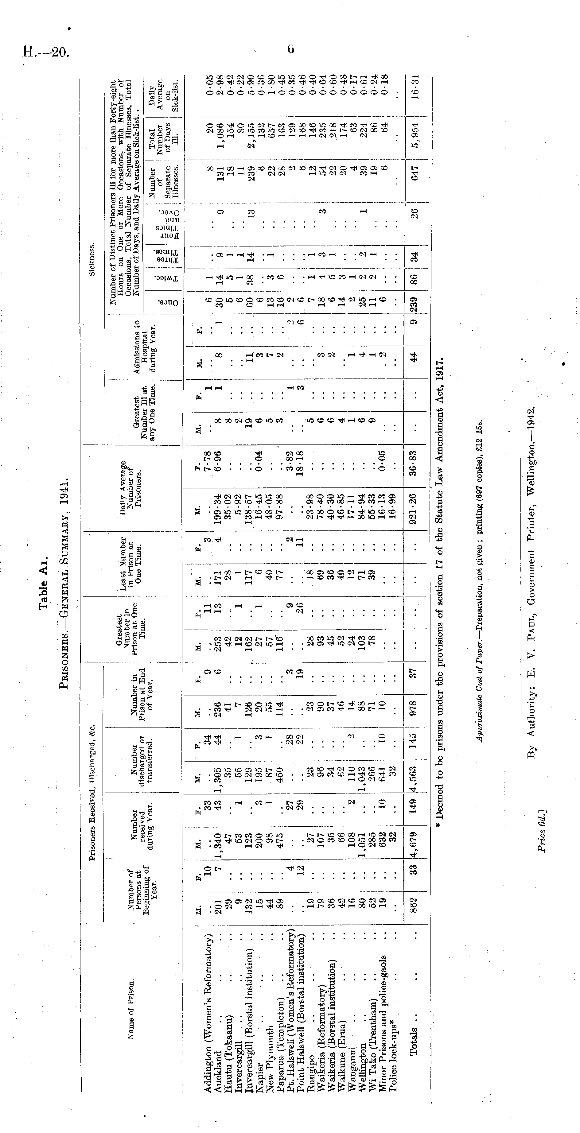 Table Ai. Prisoners.— General Summary, 1941.