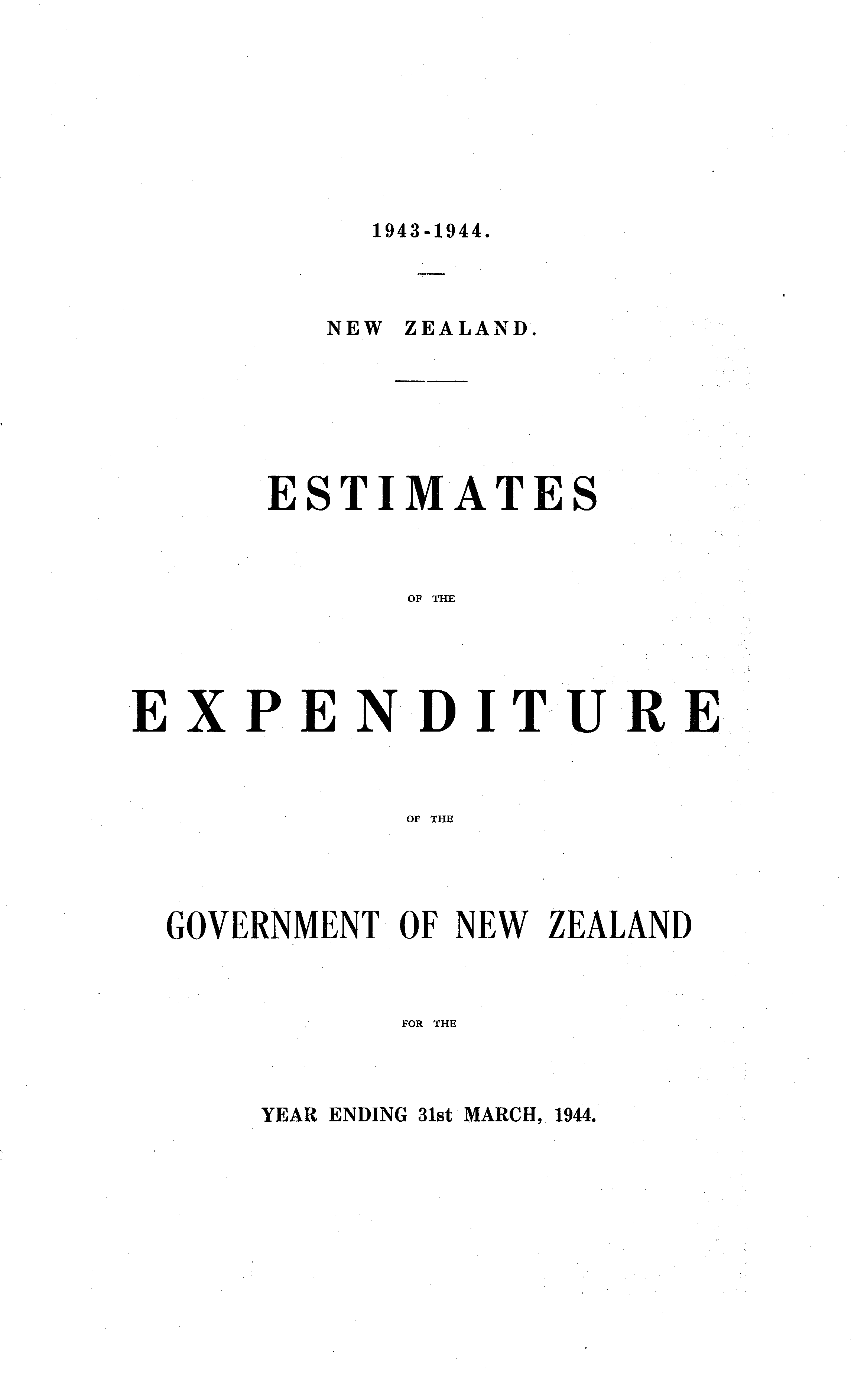 ESTIMATES OF THE EXPENDITURE OF THE GOVERNMENT OF NEW ZEALAND FOR THE YEAR ENDING 31st MARCH, 1944.
