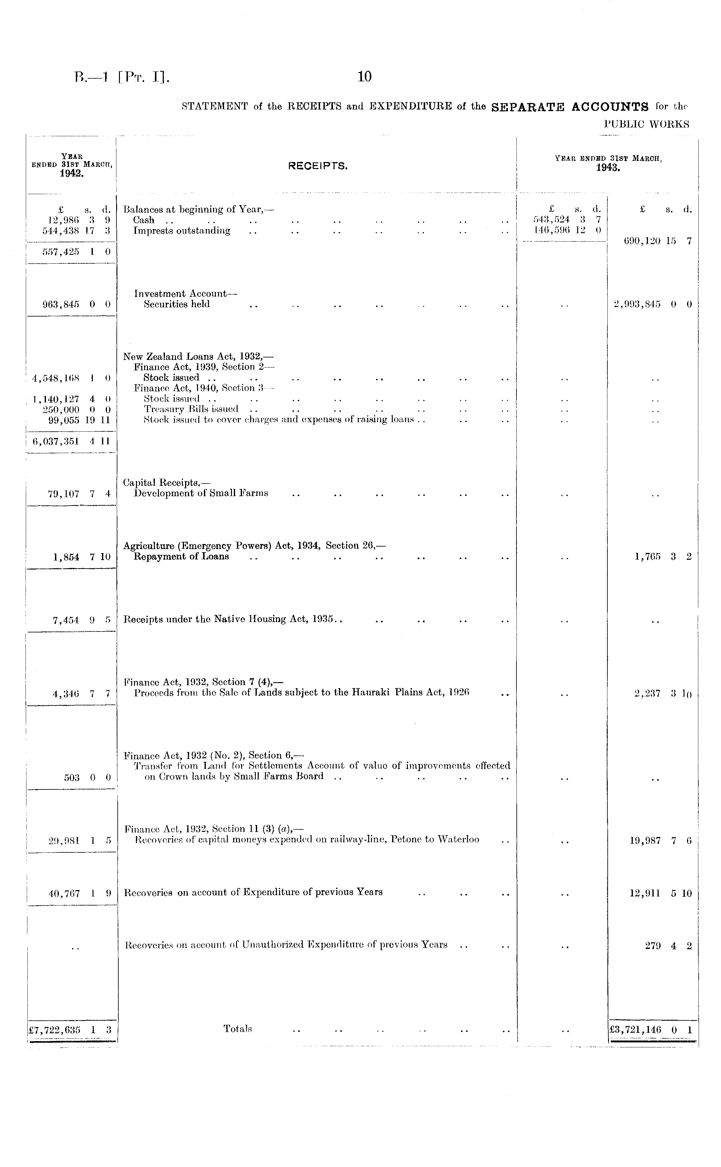 STATEMENT of the RECEIPTS and EXPENDITURE of the SEPARATE ACCOUNTS for the Year ended 31st March, 1943, compared with the Year ended 31st March, 1942.
