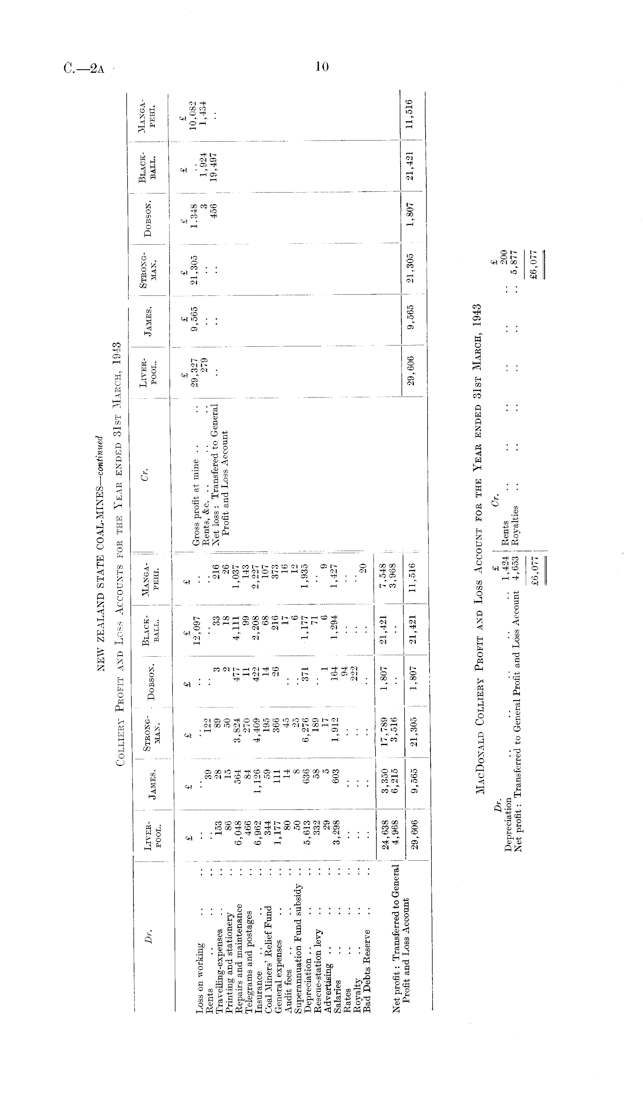 NEW ZEALAND STATE COAL-MINES— continued Colliery Profit and Loss Accounts for the Year ended 31st March, 1943