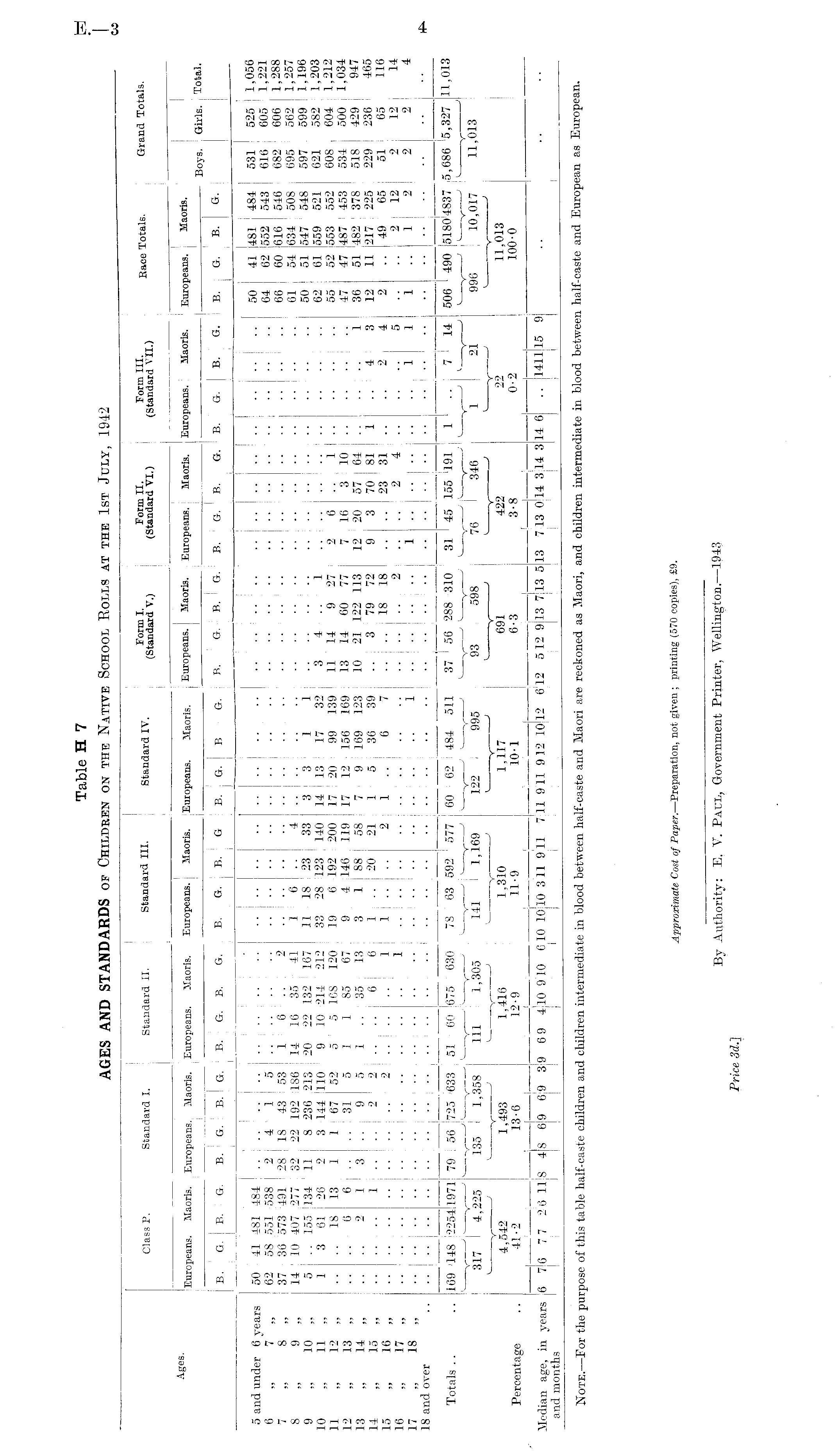 Table H 7 AGES AND STANDARDS of Children on the Native School Rolls at the 1st July, 1942