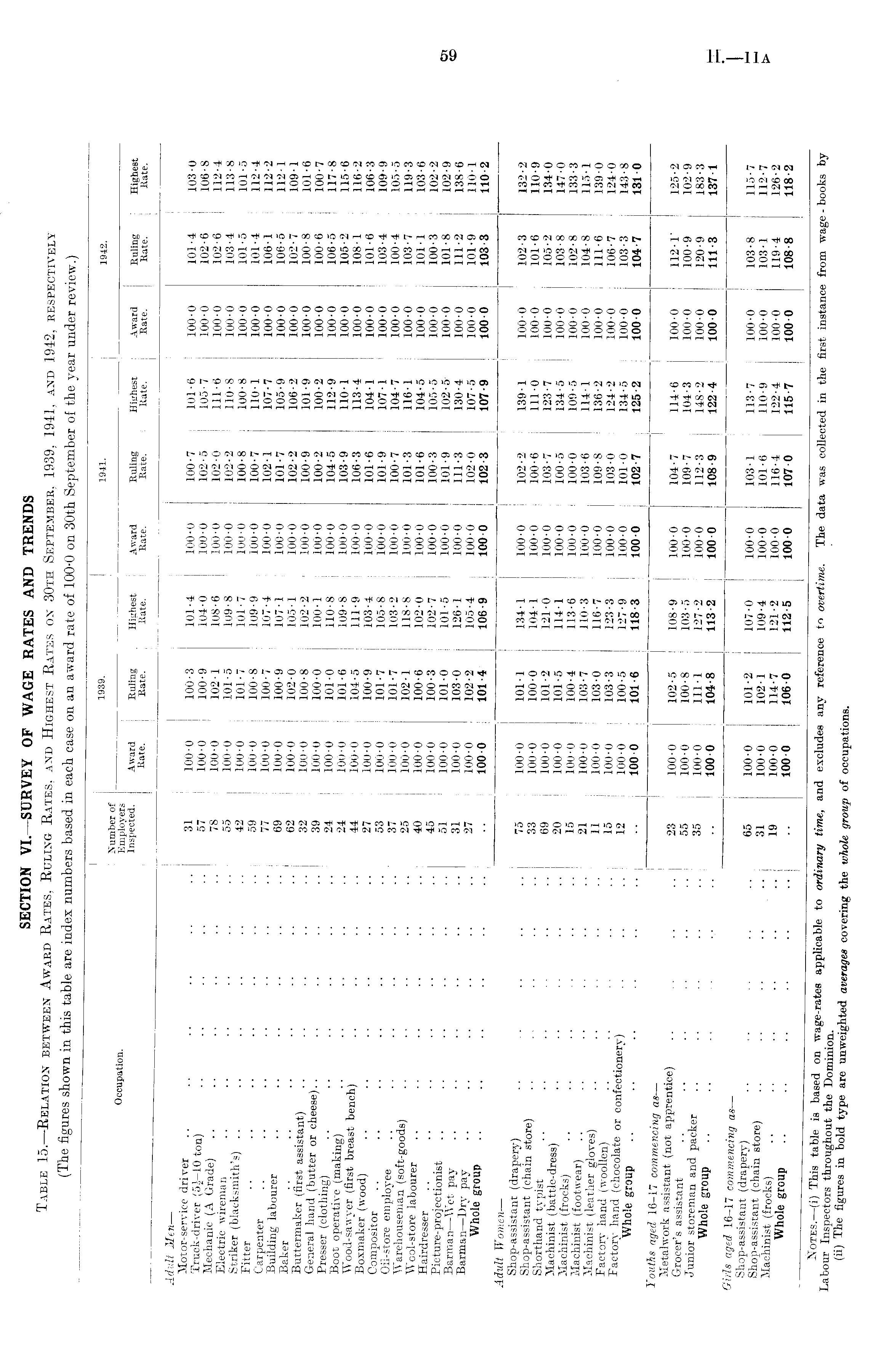 SECTION VI.—SURVEY OF WAGE RATES AND TRENDS Table 15.-Relation between Award Rates, Ruling Rates, and Highest Rates on 30th September, 1939, 1941, and 1942, respectively