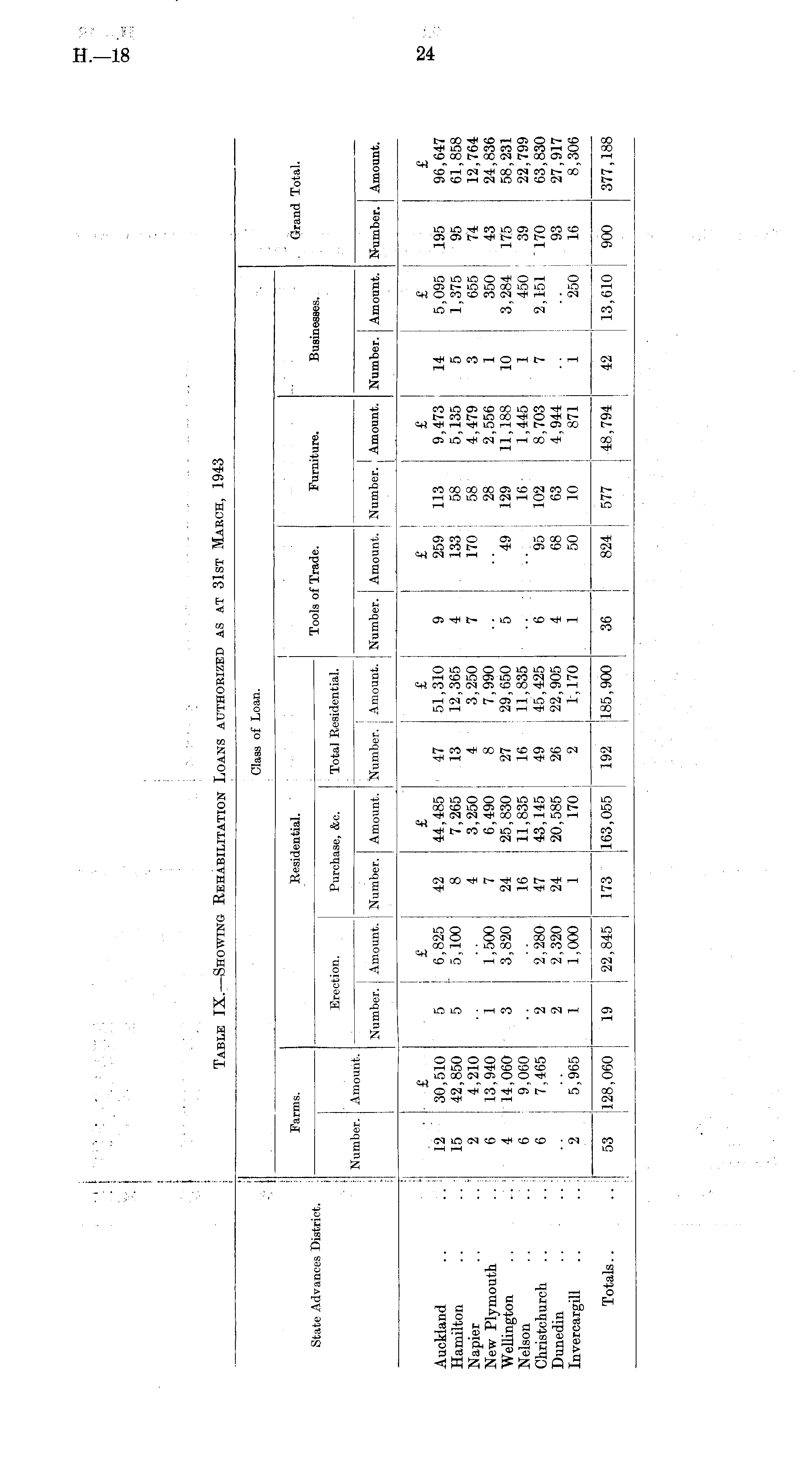 t * I . ___ - , j Class of Loan. i ! - - • | . : ■ • ; - . ; Farms. Residential. " Grand Total. State Advances District. j ; Tools of Trade. Furniture. Businesses. > Erection. Purchase, &c. Total Residential. ; Number. Amount. — j j ?— t — Number. Amount. Number. Amount. Number. Amount. Number. Amount. Number. [ Amount. Number. Amount. Number. Amount. [•-£ £ £ £ £ £ £ £ Auckland .. .J 12 30,510 5 6,825 42 44,485 47 51,310 9 259 113 9,473 14 5,095 195 96,647 Hamilton .. .. 15 42,850 5 ' 5,100 8 7,265 13 12,365 4 133 58 5,135 5 1,375 95 61,858 Napier .. .2 4,210 .. .. 4 3,250 4 3,250 7 170 58 4,479 3 655 74 12,764 New Plymouth .. j 6 13,940 1 1,500 7 6,490 8 7,990 .. .. 28 2,556 1 350 43 24,836 Wellington .. ' 4 14,060 3 3,820 24 25,830 27 29,650 5 49 129 11,188 10 3,284 175 58,231 Nelson .. 6 9,060 .. .. 16 11,835 16 11,835 .. .. 16 1,445 1 450 39 22,799 Chiistchurcli .. ..i 6 7,465 2 2,280 47 43,145 49 45,425 6 95 102 8,703 7 2,151 170 63,830 Dunedin .. .. : .. .. 2 2,320 24 20,585 26 22,905 4 68 63 4,944 .. .. 93 27,917 Invercargill ... ...I 2 5,965 1 1,000 1 170 2 1,170 1 50 10 871 1 250 16 8,306 Totals.. ..; 53 128,060 19 22,845 173 163,055 192 185,900 36 824 577 48,794 42 13,610 900 377,188