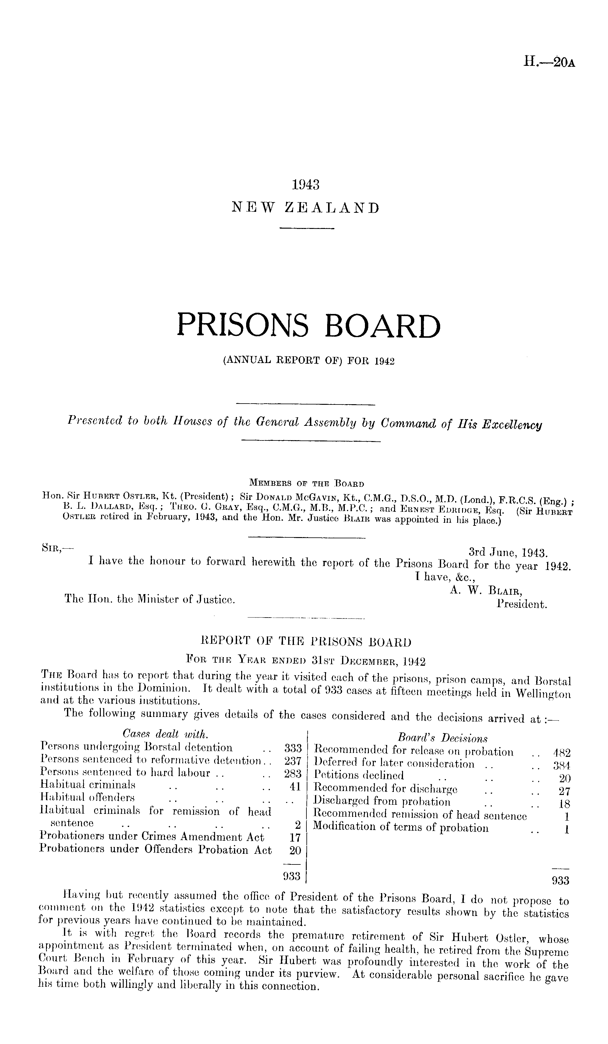 ® IR ' T . , 3rd June, 1943. 1 have the honour to forward herewith the report of the Prisons Board for the year .1942. I have, &c., mi TT T ... . m A. W. Blair, ihe Hon. the Minister of Justice. President