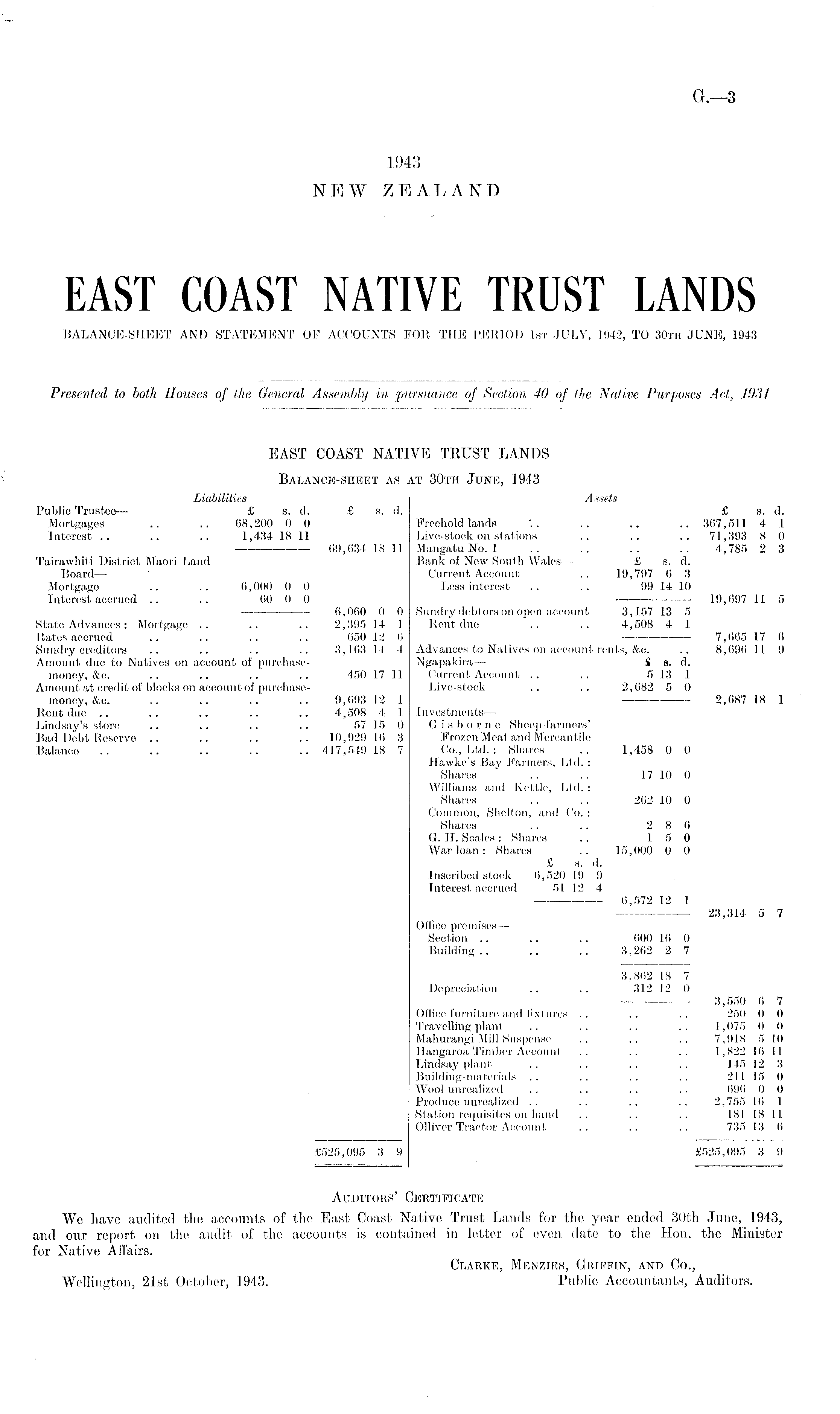 EAST COAST NATIVE TRUST LANDS BALANCE-SHEET AND STATEMENT OF ACCOUNTS FOR THE PERIOD 1st JULY, 1942, TO 30th JUNE, 1943