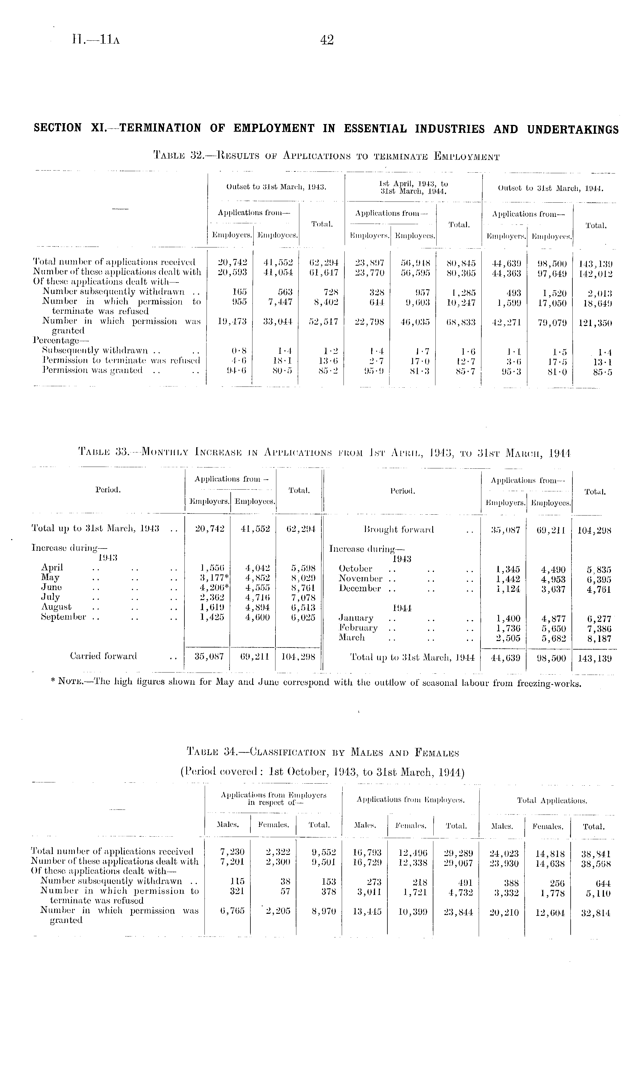 SECTION XI.-TERMINATION OF EMPLOYMENT IN ESSENTIAL INDUSTRIES AND UNDERTAKINGS Table 32. —Results of Applications to terminate Employment