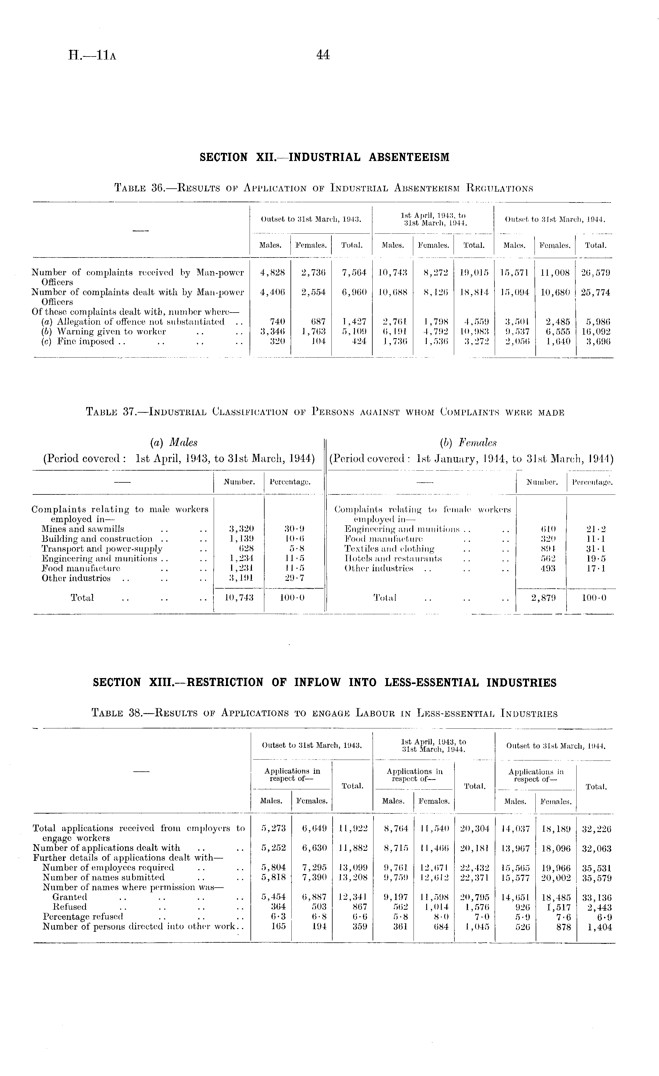 SECTION XII.—INDUSTRIAL ABSENTEEISM Table 36.—Results of Application of Industrial Absenteeism Regulations