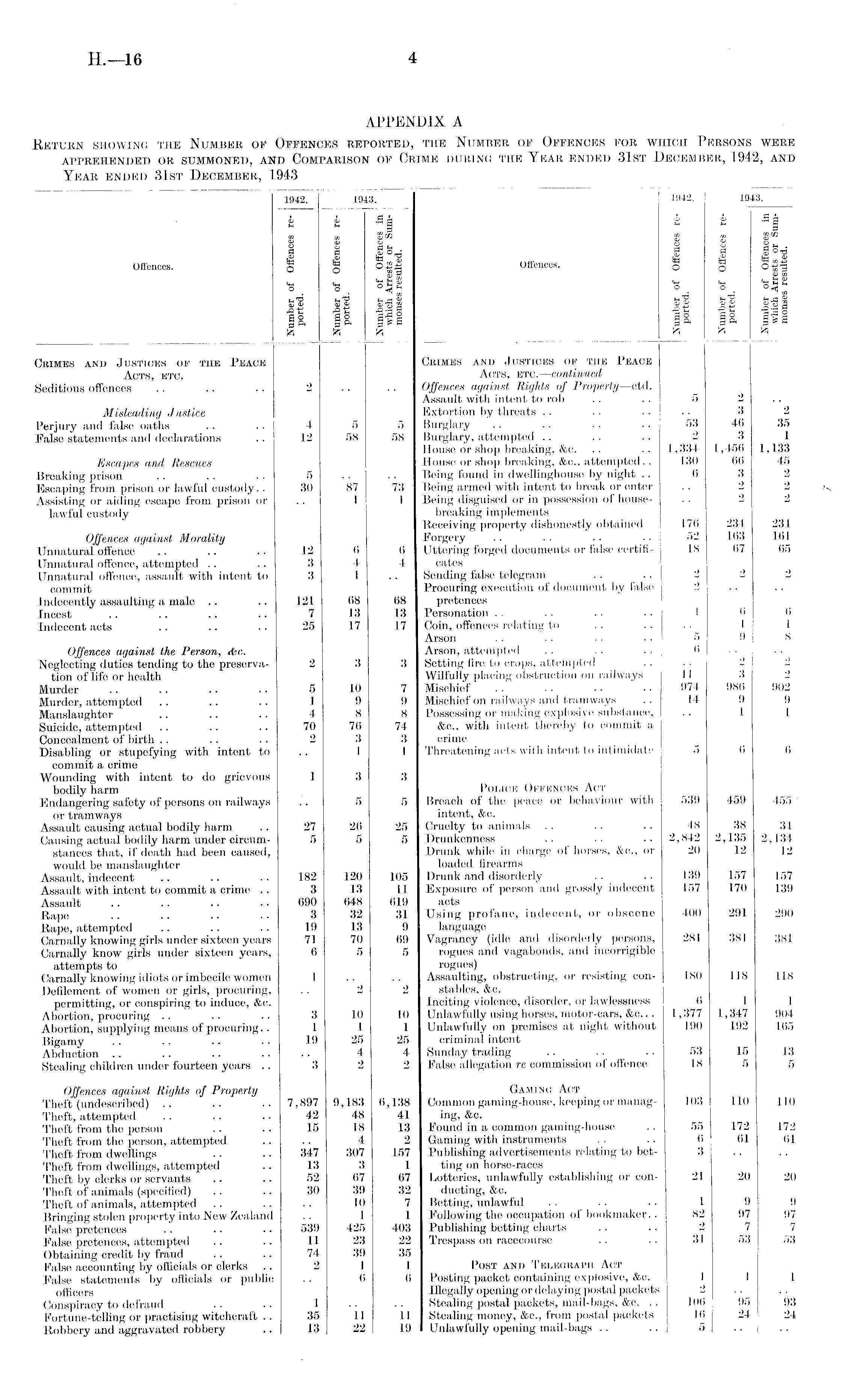 APPENDIX A Return showing the Number of Offences reported, the Number of Offences for which Persons were apprehended or summoned, and Comparison of Crime during the Year ended 31st December, 1942, and Year ended 31st December, 1943