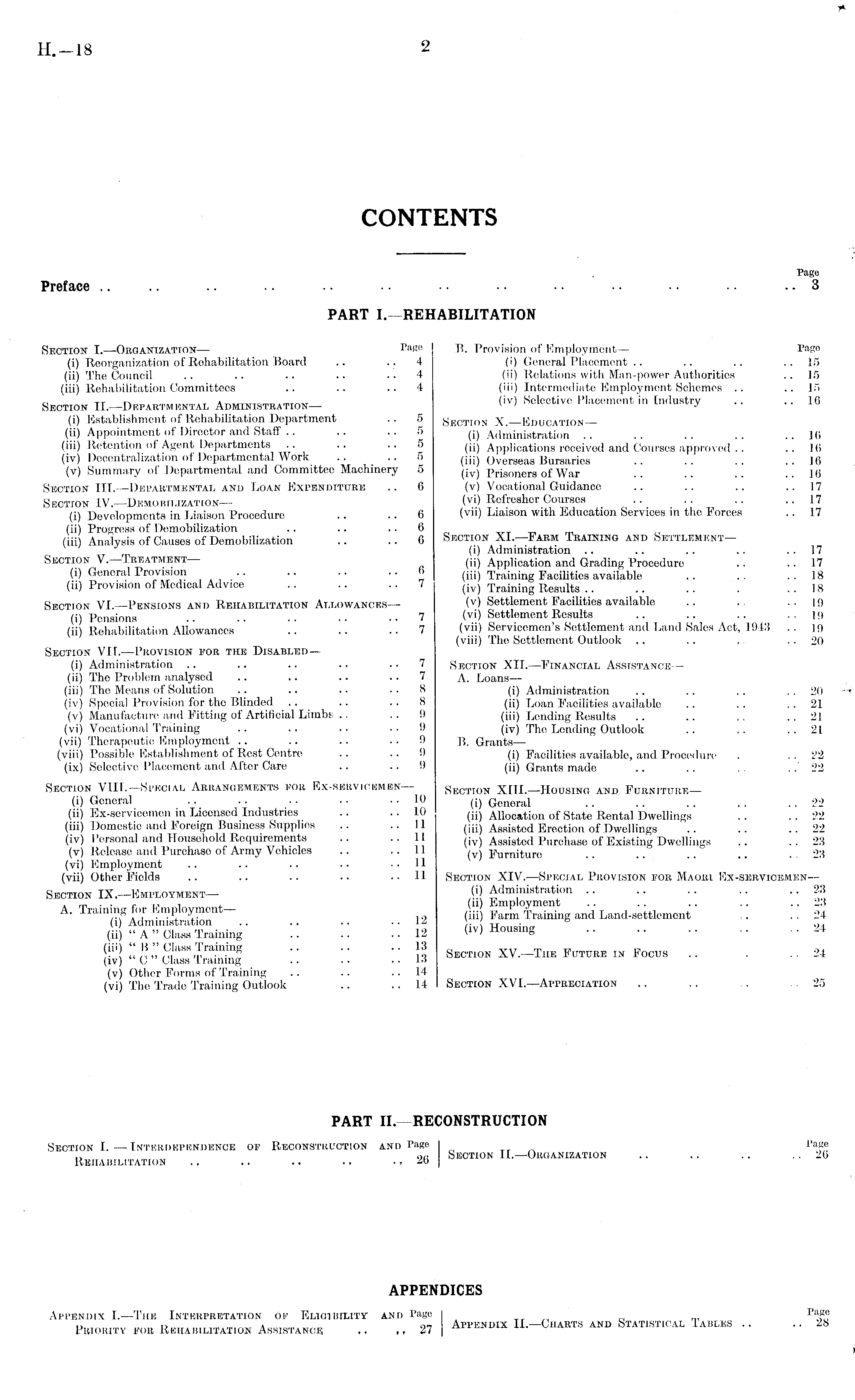 Page Preface .. .. .. .. .. • • • • • • • • • • .. 3 PART I. —REHABILITATION Section I.—Organization—- ra f? e B. Provision of Employment— Pago (i) Reorganization of Rehabilitation Board .. 4 (i) General Placement .. .. .. ..15 (ii) The Council .. .. .. .. ..4 (ii) Relations with Man-power Authorities .. 15 (iii) Rehabilitation Committees .. .. ..4 (iii) Intermediate Employment Schemes .. .. 15 Section II. —Departmental Administration— (iv) Selective Placement in Industry .. ..16 (i) Establishment of Rehabilitation Department •. »5 Section X.-^-Education (ii) Appointment of Director and Staff .. .. ..5 (i) Administration .. .. .. .. .. ](i (iii) Retention of Agent Departments .. .. 5 (jj) Applications received and Courses approved .. .. Hi (iv) Decentralization of Departmental Work .. .. 5 Overseas Bursaries .. .. .. 16 (v) Summary of Departmental and Committee Machinery 5 Prisoners of War .. .. .. ..16 Section 111. —Departmental and Loan Expenditure 6 (v) Vocational Guidance .. .. .. .. 17 Section IV.—Demobilization— (vi) Refresher Courses .. .. .. ..17 (i) Developments in Liaison Procedure .. .. 6 (vn) Liaison with Education Services in the Forces .. 17 (ii) Progress of Demobilization .. .. 6 (iii) Analysis of Causes of Demobilization .. ..0 Section Xl.—Farm Training and Settlement— (i) Administration .. .. .. .. ..17 Section V. Treatment (ii) Application and Grading Procedure .. 17 (i) General Provision •• •• •• ' (iii) Training Facilities available .. .. ..18 (ii) Provision of Mcdical Advice .. .. .. 7 (iy) Training Results .. .. . . . ..18 Section VI. —Pensions and Rehabilitation Allowances — ( v ) Settlement Facilities available .. .. •• 19 (i) Pensions .. .. .. ..7 ( v >) Settlement Results .. .. .. ..1!) (ii) Rehabilitation Allowances " !'. ! 7 (v") Servicemen's Settlement and Land Sales Act, 1943 .. in (viii) The Settlement Outlook .. .. .. 20 Section VII.—-Provision for the Disabled— (i) Administration .. .. .. .. 7 Section Xll.—Financial Assistance— (ii) The Problem analysed .. .. .. 7 a. Loans— (iii) The Means of Solution .. .. .. 8 (i) Administration .. .. .. . . 20 (iv) Special Provision for the Blinded .. .. .. 8 (ii) Loan Facilities available .. .. 21 (v) Manufacture and Fitting of Artificial Limbs .. .. 9 (iii) Lending Results .. .. .. ..21 (vi) Vocational Training .. .. .. 9 (iv) The Lending Outlook .. .. .. 21 (vii) Therapeutic Employment .. .. .. 9 B. Grants— (viii) Possible Establishment of Rest Centre .. ..9 (i) Facilities available, and Procedure . ..22 (ix) Selective Placement and After Care .. 9 (ii) Grants made .. ' .. ..' 22 Section VIII. —Special Arrangements eor Rx-servicemen Section Xlll.—Housing and Furniture — (i) General .. .. .. .. ■ • }0 (i) General .. .. .. .. .. 22 (ii) Ex-servicemen m Licensed Industries .. .. 10 (ii) Allocation of State Rental Dwellings .. ..22 (iii) Domestic and 1< oreign Business Supplies .. .. 11 Assisted Erection of Dwellings .. .. ..22 (iv) Personal and Household Requirements .. .. 11 (iv) Assisted Purchase of Existing Dwellings .. ..23 (v) Release and Purchaso of Army Vehicles .. 1 1 # t _ ## . . . 23 (vi) Employment .. .. .. •• ..11 (vii) Other Fields .. .. .. .. ..11 Section XIV.— Special Provision for Maori Ex-servicemen--Section IX.—Employment— (?) Administration .. .. .. .. .. 23 . m . . i- ™ i 4. (n) Employment .. .. . . .. 16 A. raining or ,mp oymen p arm Training and Land-settlement .. ..24 (l) Administration .. .. .. .. 11 ). ' © (ii) << A » Class Training 12 M 24 W !!S"£ lasS rp rainlng " " n Section XV.—The Future in Focus .. . ..24 (iv) C Class Training .. .. .. Id (v) Other Forms of Training .. .. .. 14 (vi) The Trade Training Outlook .. .. 14 Section XVl—Appreciation .. .. . .25 PART II. —RECONSTRUCTION Section I.—lnterdependence oe Reconstruction and Page | Pa BJ ~ oa Section 11.—Organization .. .. .. ..20 Rehabilitation .. .. .. .. ~ 2b | APPENDICES Appendix I.—The Interpretation of ELiouirLiTr and Page | Pago Priority for Rehabilitation Assistance .. 27 | Appendix lE-Charts and Statists Tables .. .. 28