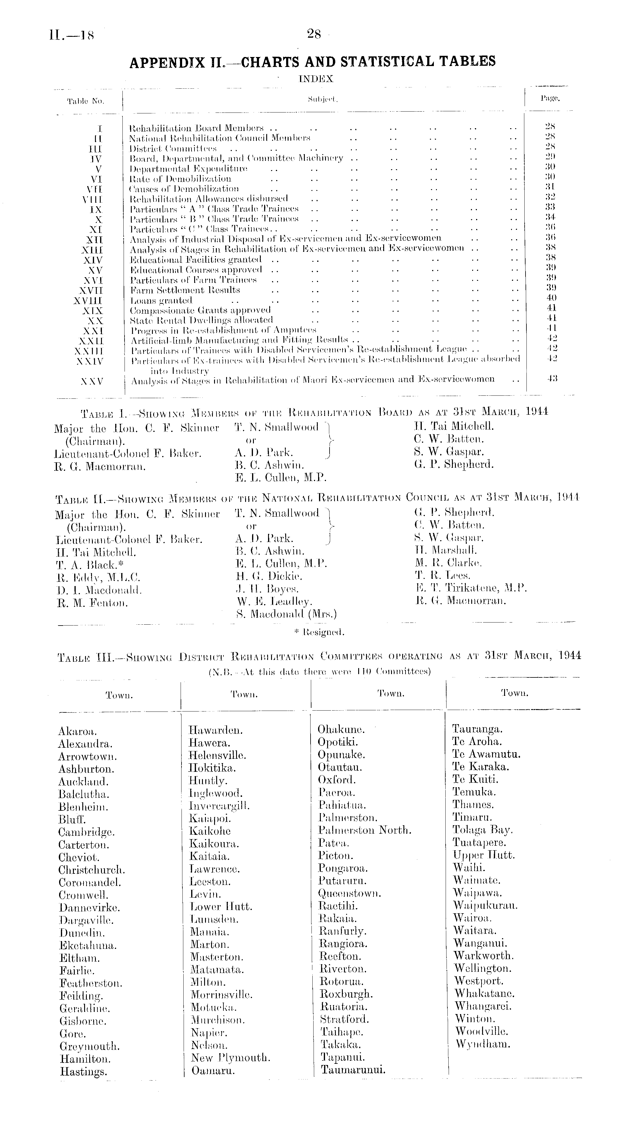 Table I.—Showing Members of the Rehabilitation Board as at 31st March, 1944 Ma jor the Hon. C. F. Skinner T. N. Smallwood "1 H. Tai Mitchell. (Chairman). or } C. W. Batten. Lieutenant-Colonel F. Baker. A. D. Park. J S. W. Caspar. R. G. Macmorran. B. C. Ashwin. G. P. Shepherd. E. L. Cullon, M.P. Table ll— Showing Members of the National Rehabilitation Council as at 31st March, 1944 Major the Hon. C. F. Skinner T. N. Smallwood G. P. Shepherd. (Chairman). or C. W. Batten. Lieutenant-Colonel F. Baker. A. D. Park. J S. W. Caspar. H. Tai Mitchell. B. C. Ashwin. H. Marshall. T. A. Black.* E. L. Cullen, M.P. M. R. Clarke. R. Eddy, M.L.C. H. G. Dickie. T. R. Lees. D. I. Macdonald. J. H. Boyes. E. T. Tirikatene, M.P. R. M. Fenton. W. E. Leadley. R. G. Macmorran. S. Macdonald (Mrs.)