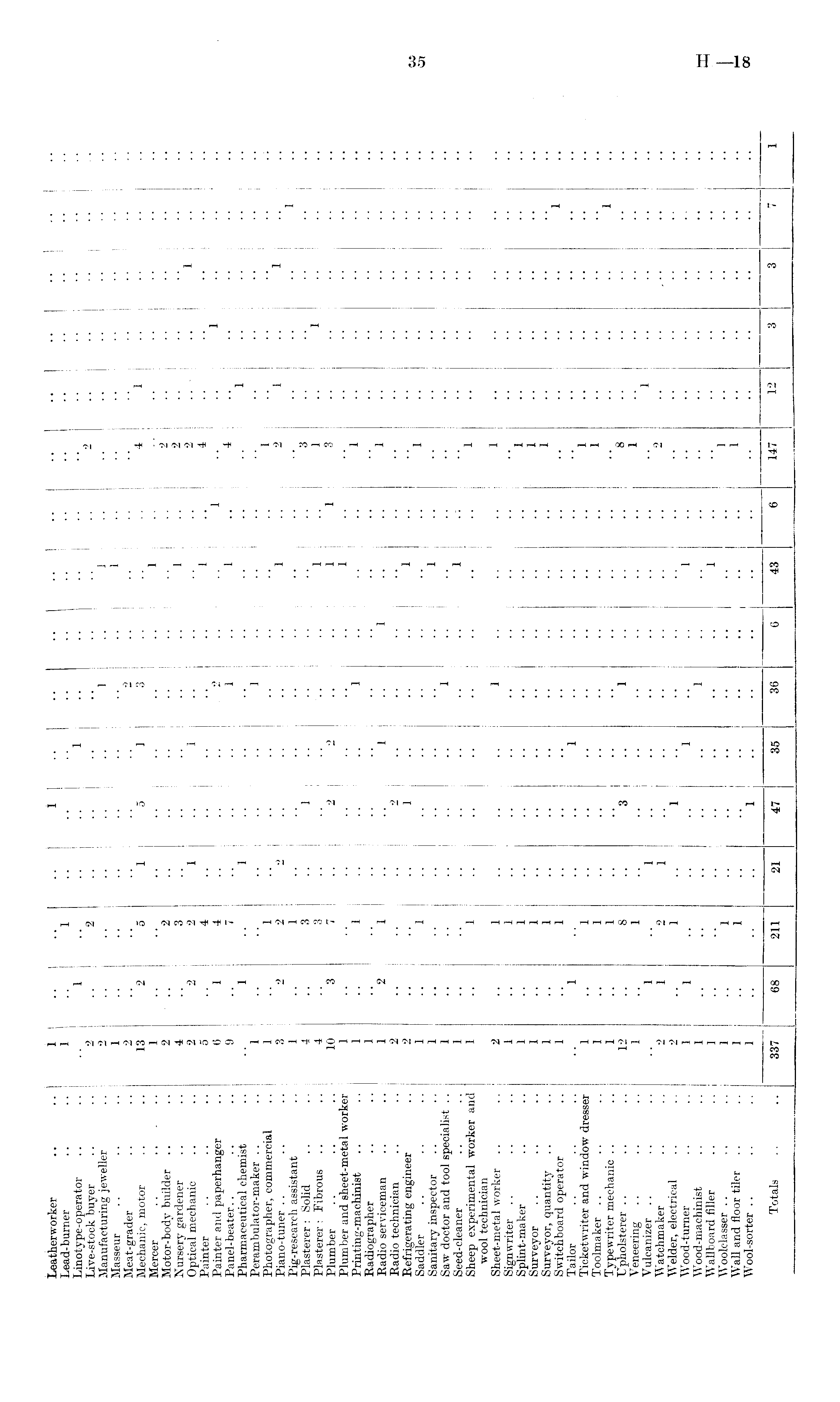 Leatherworker .. .. 1 .. .. .. 1 I .. I • • • • • • • • • • Lead-burner .. .. 1 .. 1 .. .. | .. I • • • • • ♦ • • * • ! Linotype- operator .. .. .. 1 .. .. .. 1 .. * * * * '' * *. *" * * Live-stock buyer .. .. 2 .. 2 .. .. .. .. ••! •• •* " * * ! Manufacturing jeweller .. 2 .. .. .. .. .. 1 .. 1 j • • • • • • ..... Masseur .. .. .. 1 .. .. .. .. • • • • • • 1 • • • • • • • • Meat-grader . • • • 2 .. .. .. .. .. 2 .. .. • • • • • • • • Mechanic, motor .. .. 13 2 5 1 5 1 3 .. .... 4 1 .. .. .. Mercer .. 1 .. .. .. .. .. .. .. 1 • • - • • • • • Motor-body builder .. .. 2 " .. 2 .. .. .. .. .. .. • • 2 .. .. | Nursery gardener .. .. 4 .. 3 .. .. .. .. .. 1 •• 2 Optical mechanic .. .. 2 2 2 1 .. 1 .. .. .. •• 2 .. 1 Painter .. .. .. 5 .. 4 .. .. .. .. .. 1 .. 4 •• •• .... Painter and paperhanger .. 6 1 4 .. .. .. 2 .. .. 1 •• •• 1 Panel- beater.. .. .. 9 .. 7 .. .. .. 1 .. 1 •• Pharmaceutical chemist .. .. 1 .. 1 .. .. .. .. •• •• •• 1 Perambulator-maker .. .. 1 .. .. .. . . .. 1 . • • • Photographer, commercial .. 1 .. 1 .. .. .. .. .. •• • • I * Piano-tuner .. .. .. 3 2 2 2 .. .. .. .. 1 2 1 .. 1 Pig-research assistant .. 1 .. 1 .. .. .. •• •• •• •• •• •• •• • • * Plasterer: Solid .. .. 4 .. 3 .. 1 .. .. .. .. •• 3 Plasterer: Fibrous .. .. 4 .. 3 .. .. .. .. .. 1 •• 1 •• 1 Plumber .. .. .. 10 3 7 .. 2! 2 .. .. 1 1 3 Plumber and sheet-metal worker 1 .. .. .. I .. .. 1 Printing-machinist .. .. 1 .. 1 .. .... 1 .. .. •. 1 Radiographer .. .. 1 .. .. .. Radio serviceman .. .. 1 2 1 .. .. 1 .. 1 .. .. 1 Radio technician .. .. 2 .. .. .. 2 Refrigerating engineer .. 2 .. .. .. 1 .. -. .. 1 Saddler .. .. .. 1 .. 1 .. .. .. .. .. •. •• 1 Sanitary inspector .. .. 1 .. .. .. .. .. .. .. 1 Saw doctor and tool specialist .. 1 .. .. .. .. .. 1 Seed-cleaner .. .. 1 .. .. .. .. .. .. .. 1 • • Sheep experimental worker and 1 .. 1 .. .. .. .. .. •• •• 1 wool technician Sheet-metal worker .. .. 2 .. 1 .. .. .. 1 .. .. .. 1 Sign writer .. .. .. 1 .. 1 Splint-maker .. .. 1 .. 1 .. .. .. .. .. .. .. 1 Surveyor .. .. .. 1 .. 1 .. .. .. .. .. .. •• 1 Surveyor, quantity .. .. 1 .. 1 .. .. .. .. .. .. •. 1 •• Switchboard operator .. 1 .. 1 .. .. .. .. .. .. .. •• •• .. .. 1 Tailor .. .. .. .. 1 .. .. .. 1 Ticketwriter and window dresser 1 .. 1 .. .. .. .. .. .. .. 1 Toolmaker .. .. ... 1 .. 1 .. .. .. .. .. .. .. 1 Typewriter mechanic .. .. 1 .. 1 .. .. .. .. .. .. .. • • • • • • • • 1 Upholsterer .. .. .. 12 .. 8 .. 3 .. 1 • • • - • • ® • • • • Veneering .. . „ .. 1 .. 1 .. .. .. .. .. .. .. 1 Vulcanizer .. .. .. .. 1 .. 1 J .. .. .. .. • • 1 Watchmaker .. .. 2 1 2 1 .. .. .. .. .. •• 2 .. .. ,.. Welder, electrical .. .. 2 .. 1 .. 1 Wood-turner .. .. 1 1 .. .. .. 1 .. .. 1 Wood-machinist .. .. 1 .. .. .. .. .. 1 .. .. . - • • • • • • • • .... Wallboard filler .. .. j ] .. .. \ .. .. .. .. 1 Woolclasser .. .. .. i 1 .. 1 .. .. .. .. . .. .. 1 Wall and floor tiler .. .. 1 .. 1 .. .. ... ( .. 1 Wool-sorter .. .. .. 1 .. .. .. 1 • Totals .. .. 337 68 211 21 47 35 36 6 43 6 147 12 3 3 7 1