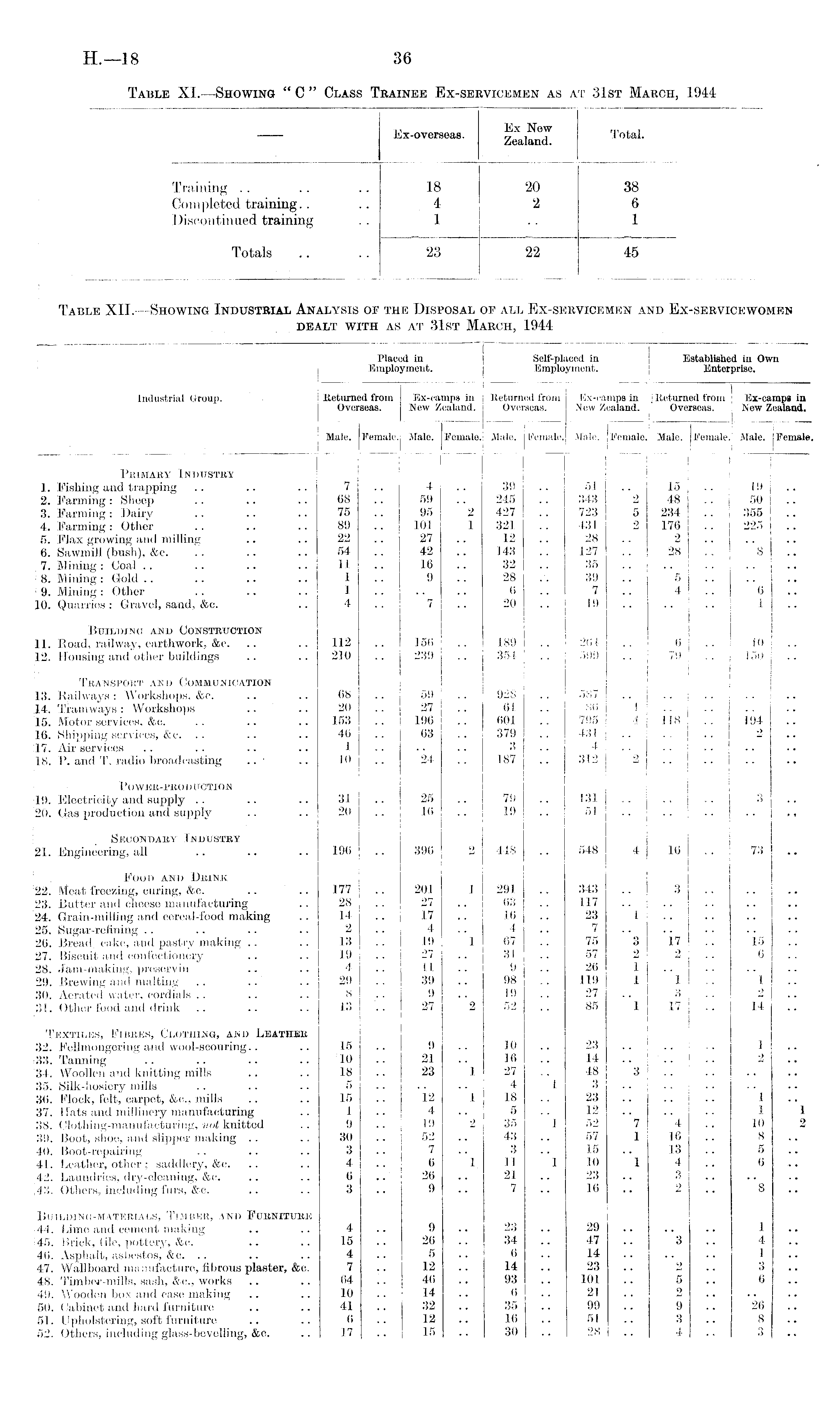 Table XI.—Showing "C" Class Trainee Ex-servicemen as at 31st March, 1944