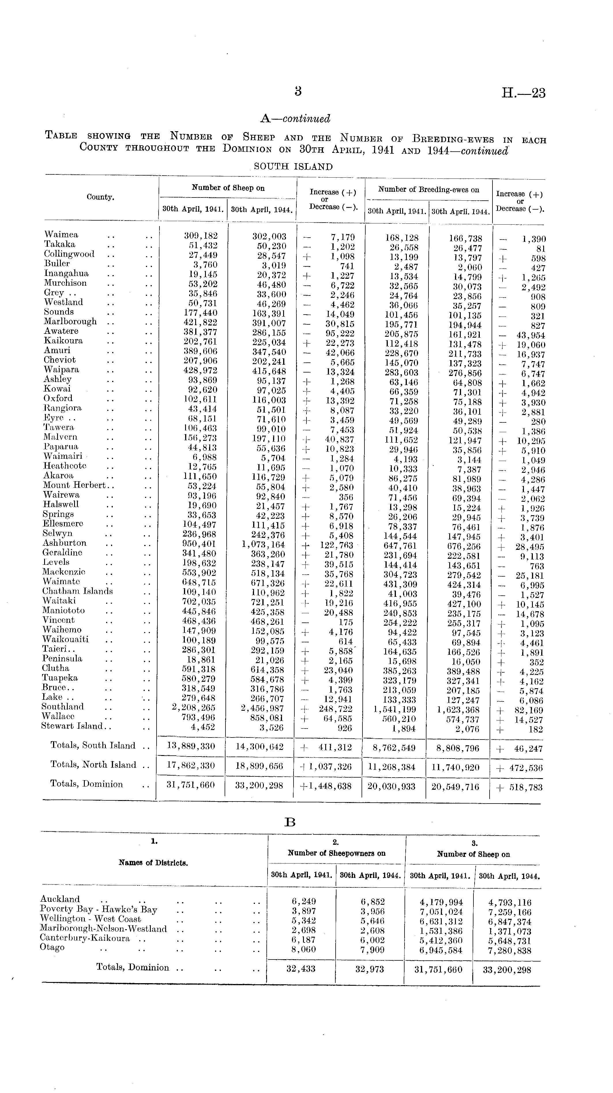 A —continued Table showing the Number of Sheep and the Number of Breeding-ewes in each County throughout the Dominion on 30th April, 1941 and 1944—continued SOUTH ISLAND
