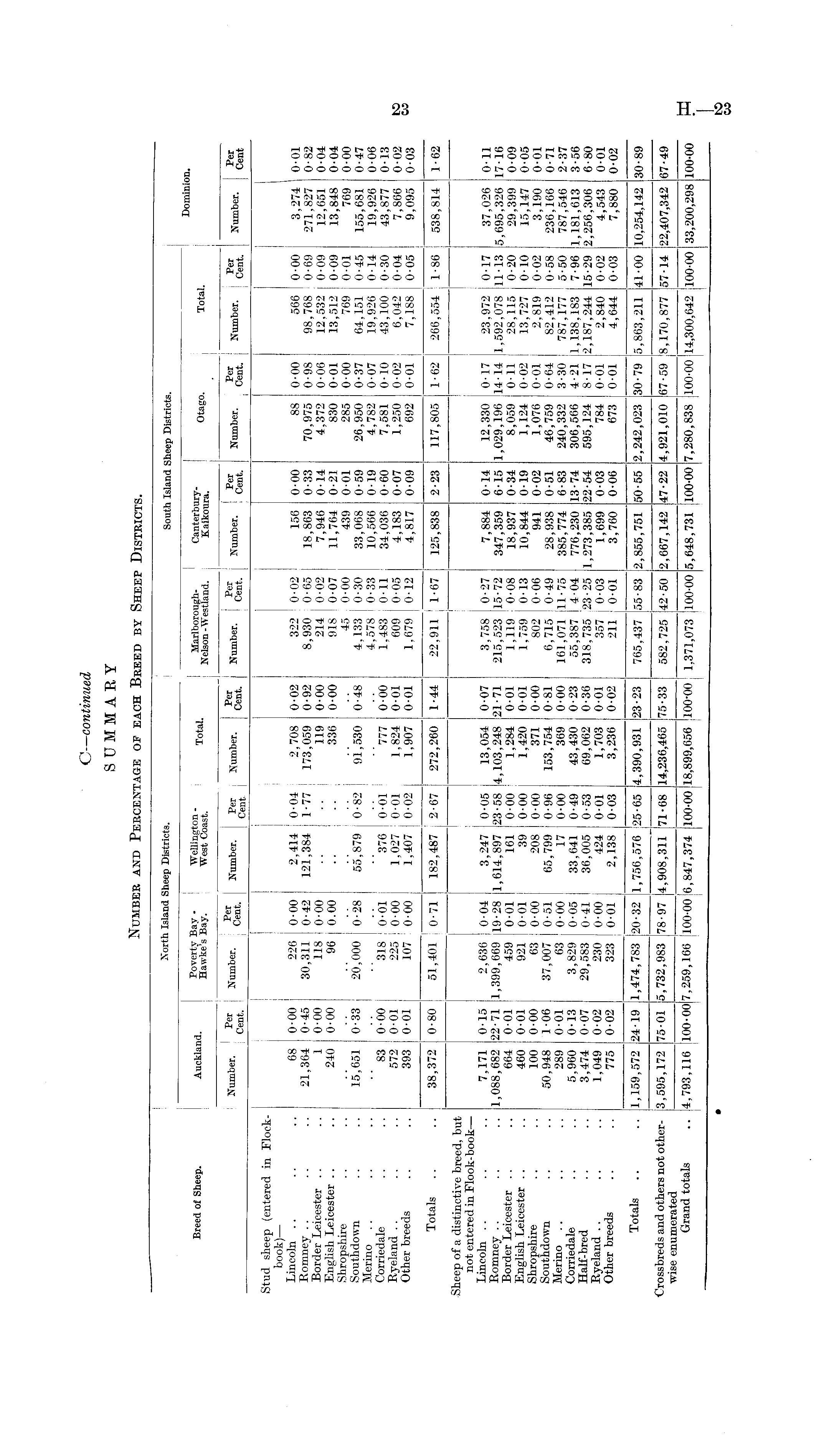 C— continued SUMMARY Number and Percentage of each Breed by Sheep Districts.