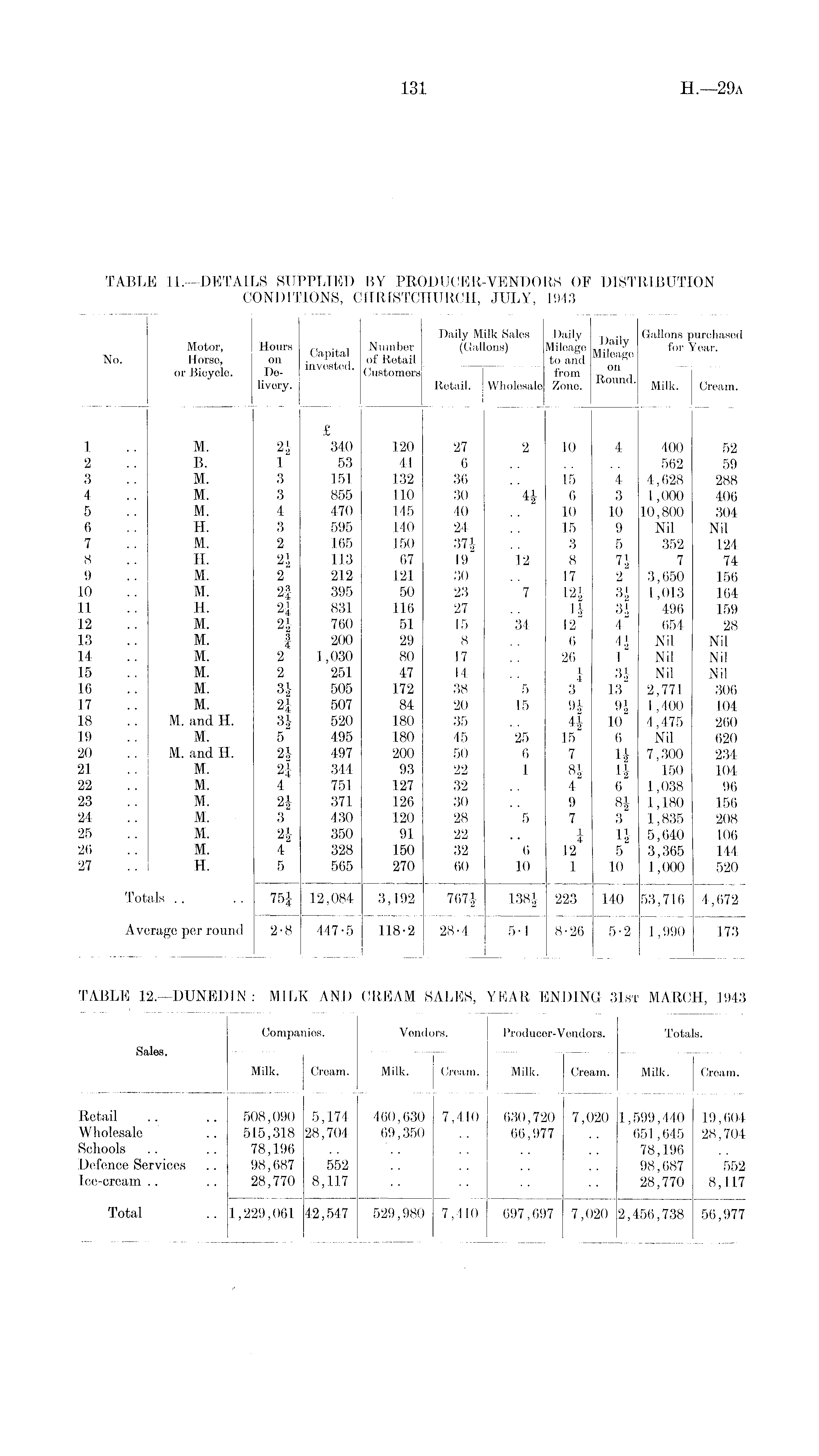 TABLE 12.—DUNEDIN: MILK AND CREAM SALES, YEAR ENDING 31st MARCH, 1943
