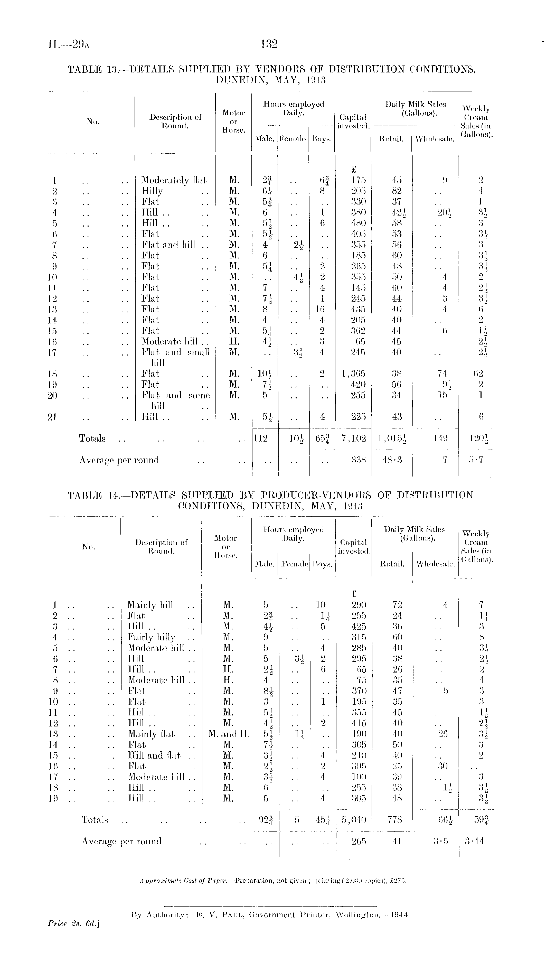 TABLE 13.—DETAILS SUPPLIED BY VENDORS OF DISTRIBUTION CONDITIONS, DUNEDIN, MAY, 1943