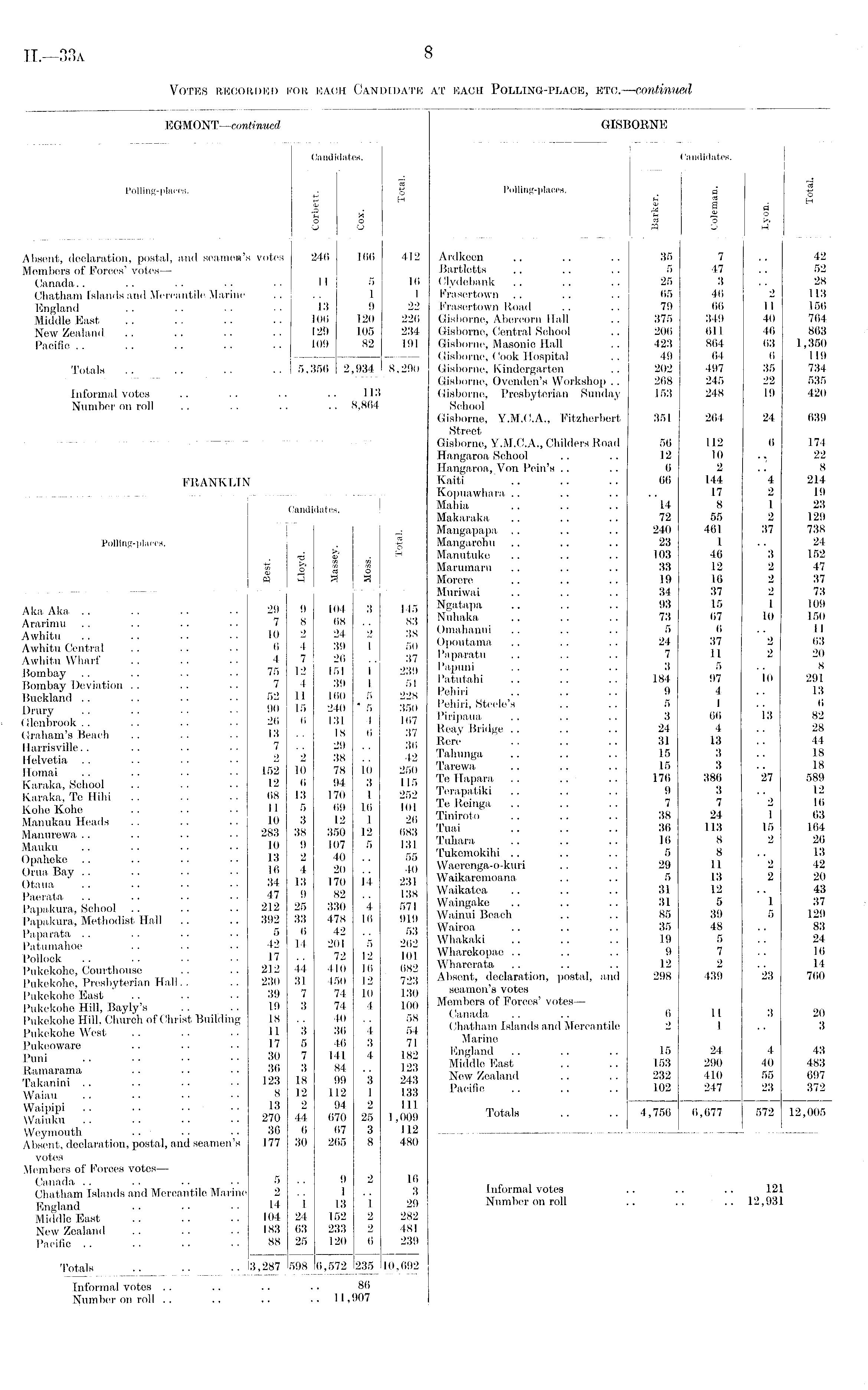 Votes recorded for each Candidate at each Polling-place, etc. —continued