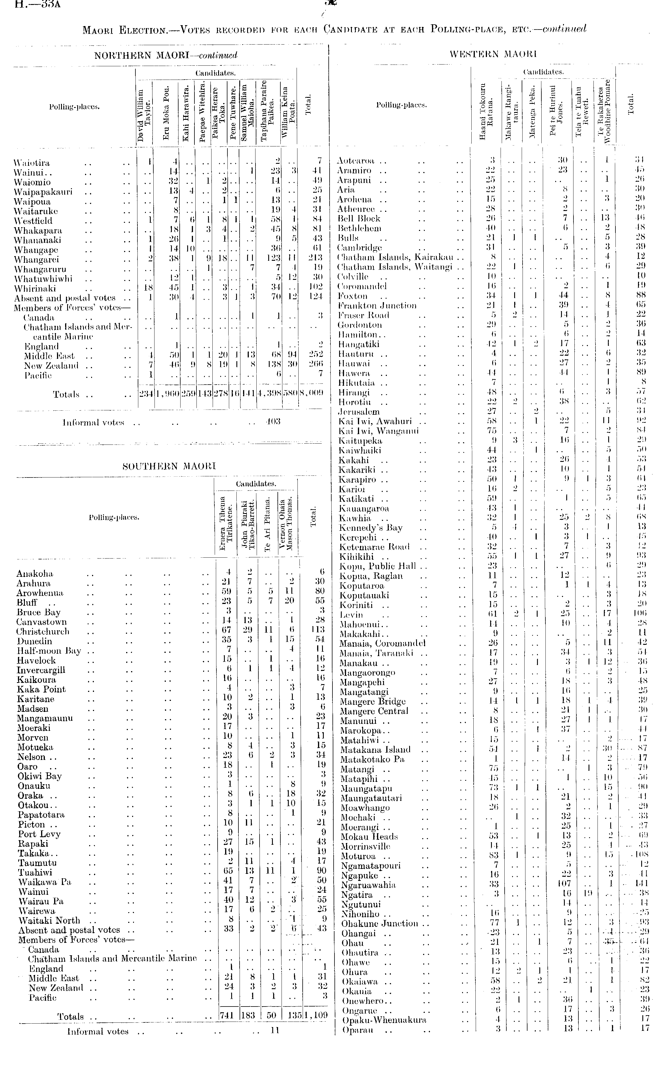 Maori Election. —Votes recorded for each Candidate at each Polling-place, etc.—continued