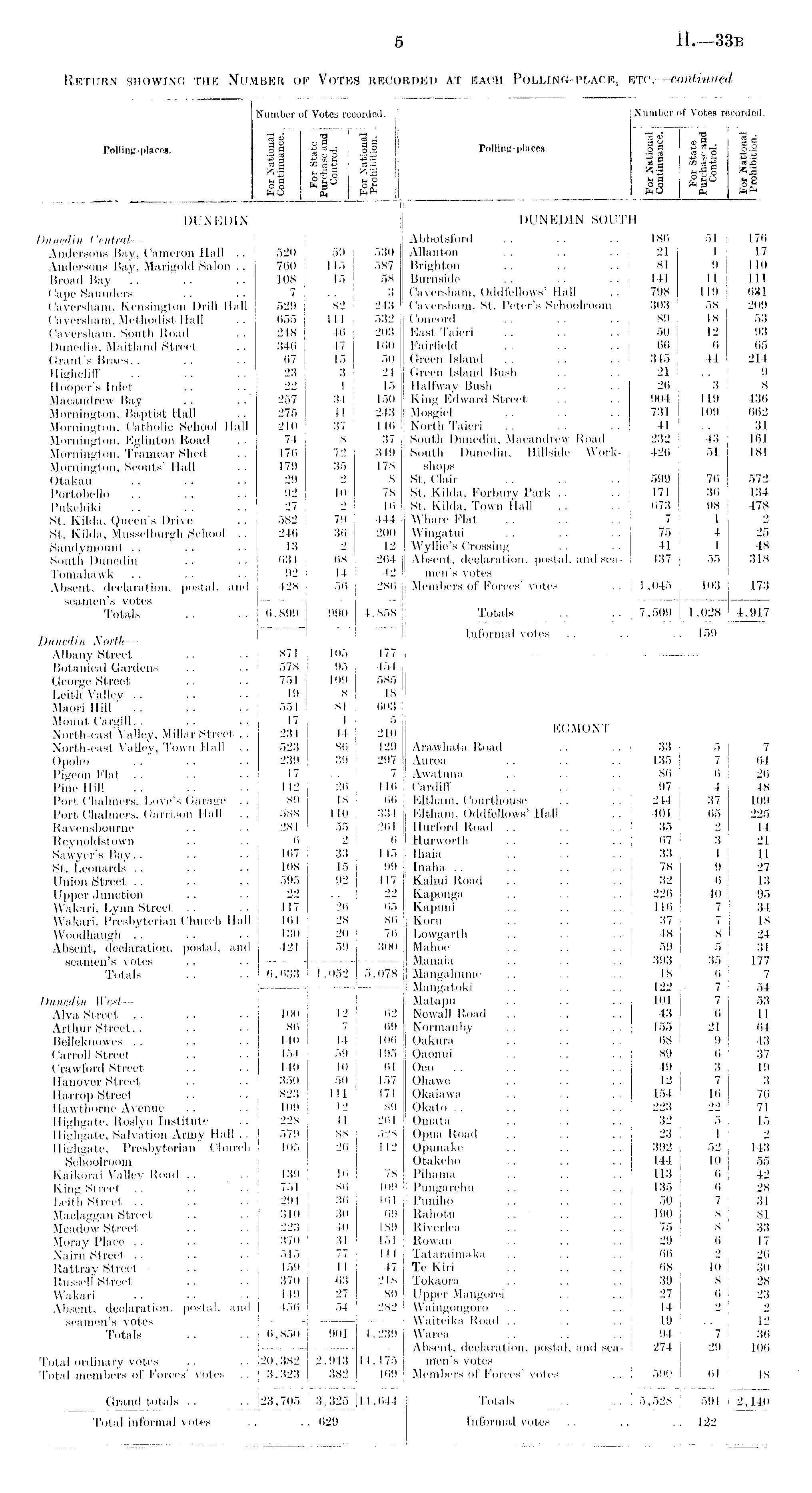 Number of Votes recorded. is ! „■§ id Polling-places. o« So "5 —s a ■ m * "§ ,2 H *■$ I M-g§ s§ i si 5 s| feO | CM 7 DUNEDIN SOUTH Abbotsford .. .. .. 186 51 17(3 Allan ton . . .. .. 21 1 17 Brighton .. . . .. 81 9 110 Burnside .. I l l 11 111 Caversham, Oddfellows'Hall .. 798 119 631 Caversham, St. Peter's Schoolroom 303 58 209 Concord .. .. .. 89 18 53 East Taieri. .... . . 50 12 93 Fairfield .. .. .. 66 6 65 Green Island .. .. .. 345 44 214 Green Island Bush .. .. 21 . . 9 Halfway Bush .. .. 26 3 8 King Edward Street .. .. 904 119 436 Mosgiel . . .. .. 731 109 662 North Taieri . . .. . . 41 .. 31 South Dunedin, Macandrew Road 232 43 161 South Dunedin, Hillside Work- 426 51 181 shops St. Clair . . . . .. 599 76 572 St. Kilda, Forbury Park .. . . 171 36 134 St. Kilda, Town Hall . . .. 673 98 478 Whare Flat .. . . . . 7 1 2 Wingatui . . . . 75 4 25 Wyllie's Crossing .. .. 41 1 48 Absent, declaration, postal, and sea- 437 55 318 men's votes Members of Forces'votes .. 1,045 103 173 Totals .. .. 7,509 1,028 i 4,917 Informal votes .. .. • • 159 EGMONT Arawhata Koad .. . . 33 ,5 7 Auroa .. . . . . 135 7 64 Awatuna .. .. . . 86 6 26 Cardiff .. .. . . 97 4 48 Eltham, Courthouse . . . . 244 37 109 Eltham, Oddfellows' Hall . . 401 65 225 Hurford Road .. . . .. 35 2 14 Hurworth .. . . . . 67 3 21 Ihaia . . .. .. 33 1 11 Inaha .. . . .. .. 78 9 27 Kahui Road .... . . 32 6 13 Kaponga .. .. .. 226 40 95 Kapuni . . . . . . 116 7 34 I Koru .. .. . . 37 7 18 1 Lowgarth .. .. . . 48 8 24 i Mahoe . . . . .. 59 5 31 Manaia .. .. .. 393 35 177 i Mangahume .. .. .. 18 6 7 Mangatoki .. .. .. 122 7 54 Matapu . . .. . . 101 7 53 Newall Road .. .. .. 43 6 11 Normanby .. .. .. 155 21 64 Oakura . . .. .. 68 9 43 Oaonui .. .. .. 89 6 37 Oeo . . .. .. 49 3 19 Ohawe .. . . .. 12 7 3 Okaiawa . . . . .. 154 16 76 Okato .. .. .. .. 223 22 71 Omata .. .. .. 32 5 15 Opua Road .. .. . . 23 1 2 Opunake .. .. .. 392 52 143 Otakeho .. . . .. 144 10 55 ' Pihama .. .. ..113 6 42 ! Pungarehu .. .. .. 135 6 28 Puniho .. .. .. 50 7 31 1 Rahotu . . .. . . 190 8 81 1 Riverlea .. .. .. 75 8 33 Rowan .. .. .. 29 6 17 Tataraimaka .. . . .. 66 2 26 Te Kiri .. .. .. 68 10 30 ■ Tokaora .. .. . . 39 8 28 ' Upper Mangorei .. .. 27 6 23 Waingongoro .. .. .. 14 2 2 ! Waiteika Road .. .. . . 19 .. 12 1 Warea . . . . .. 94 7 36 Absent, declaration, postal, and sea- 274 29 106 men's votes 1 Members of Forces' votes .. 590 61 48 Totals . . 5,528 591 1 2,140 Informal votes . . . j 122